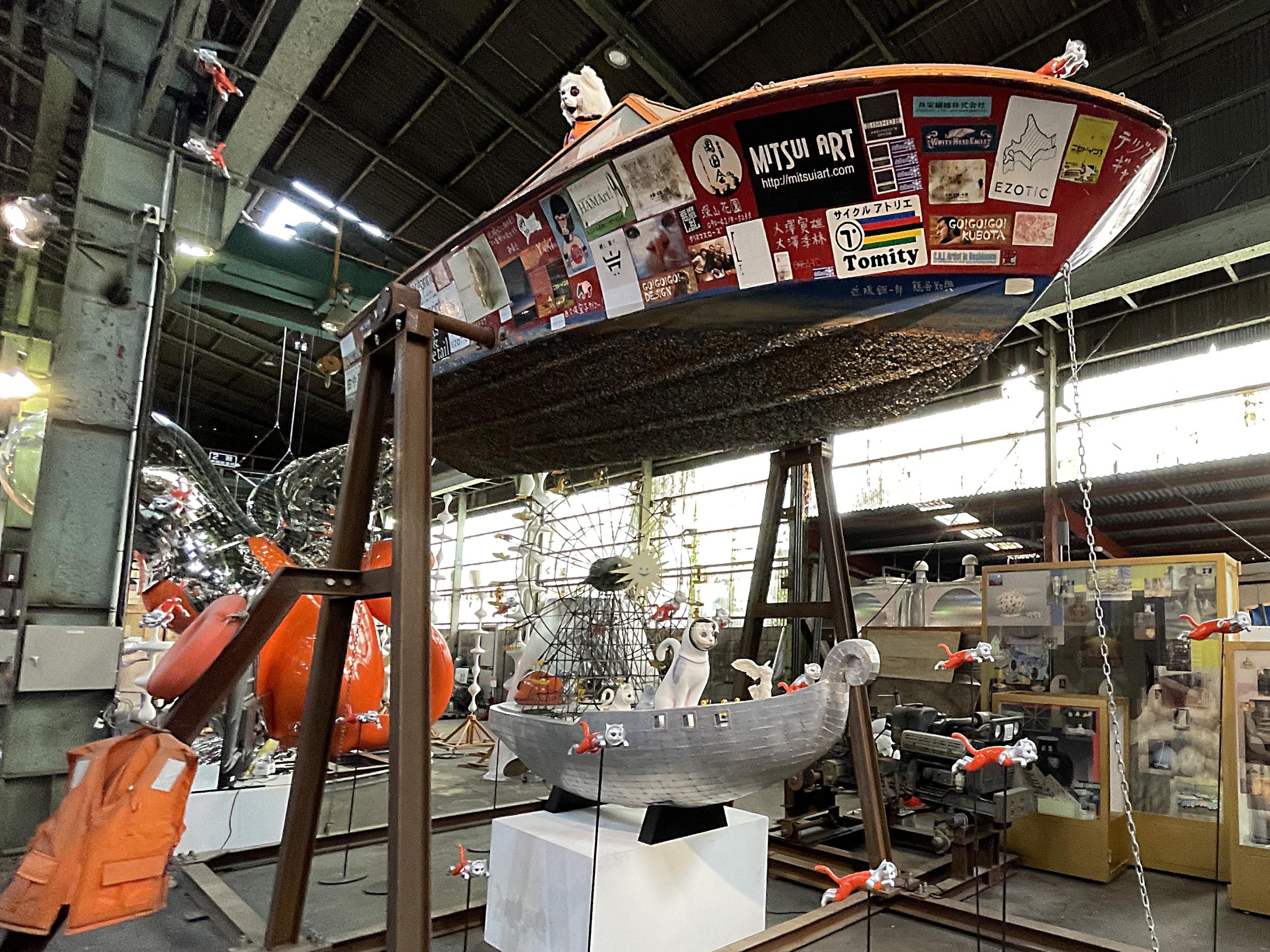 ここからは様々なクリエイターとのコラボ作品。クボタ弘成 大阪廻船、その下にヤノベケンジ ラッキードラゴン 構想模型(LUCA the Landing バージョン)、船上の観覧車はMin Ferris Wheel。