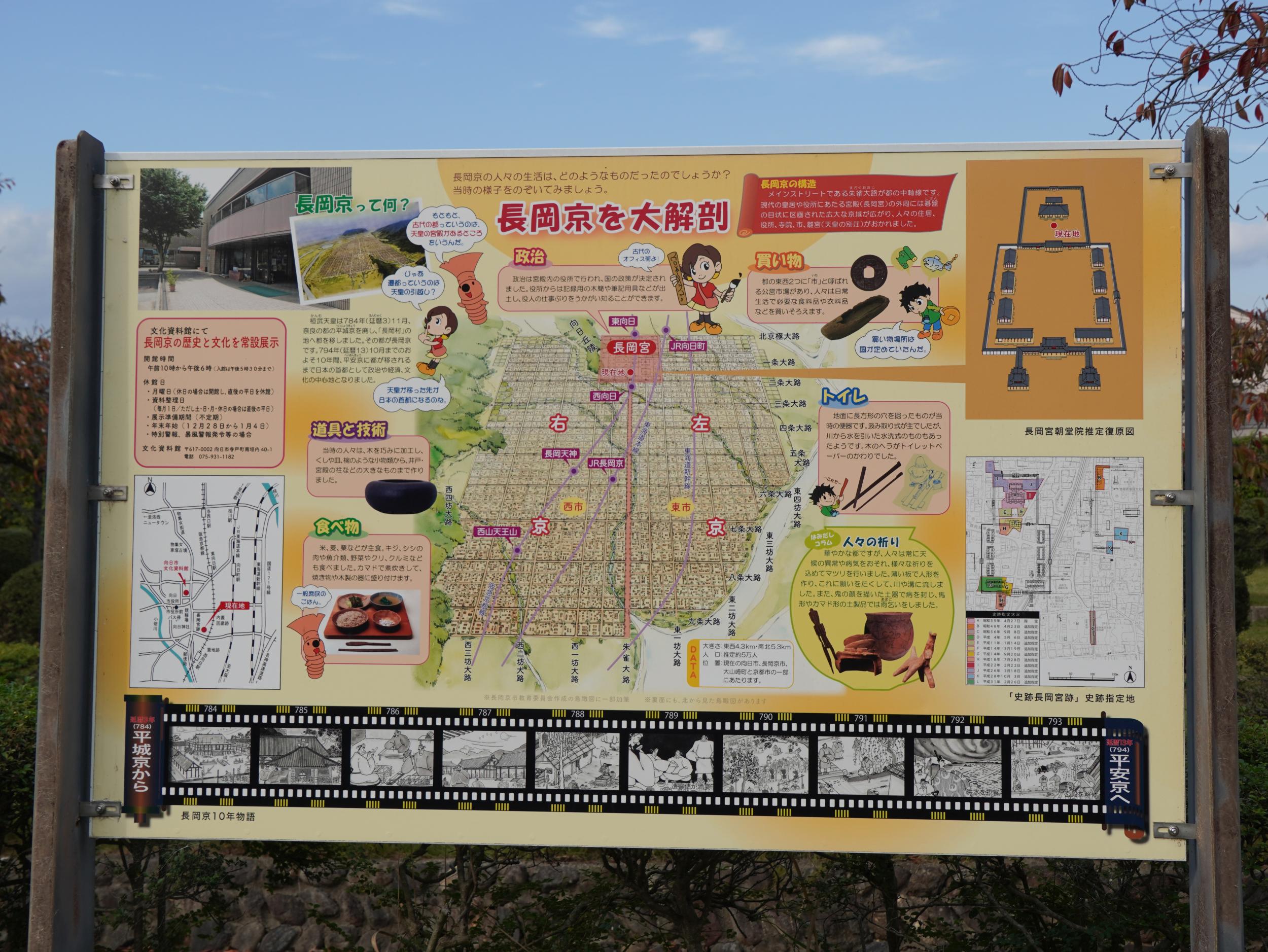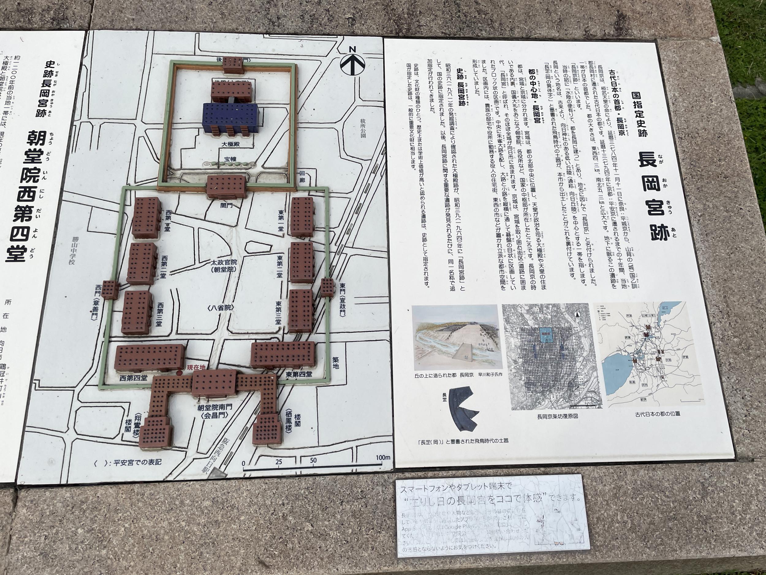 延暦3年(784年)に平城京からここ山城国乙訓郡長岡村に遷され、延暦13年(794年)に平安京に遷されるまでの10年間「日本の首都」だったと明記されています。