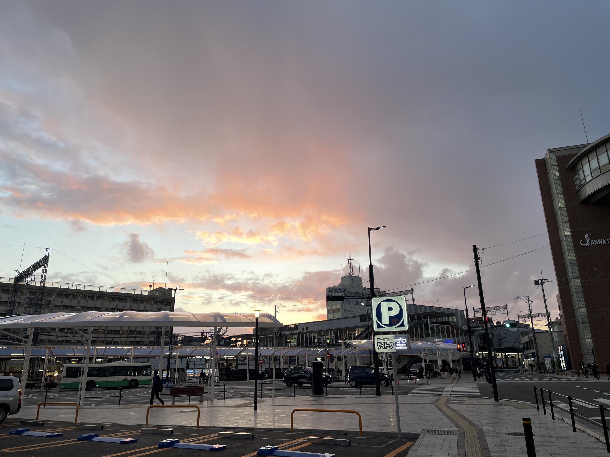 いっぱい引っ掛けて帰るつもりだった立ち呑み屋さんはビル自体がなくなっていました。大和西大寺駅北口で夕焼け。しばし安倍元首相を偲びます。高市首相誕生をさぞかし喜んでいるはず。