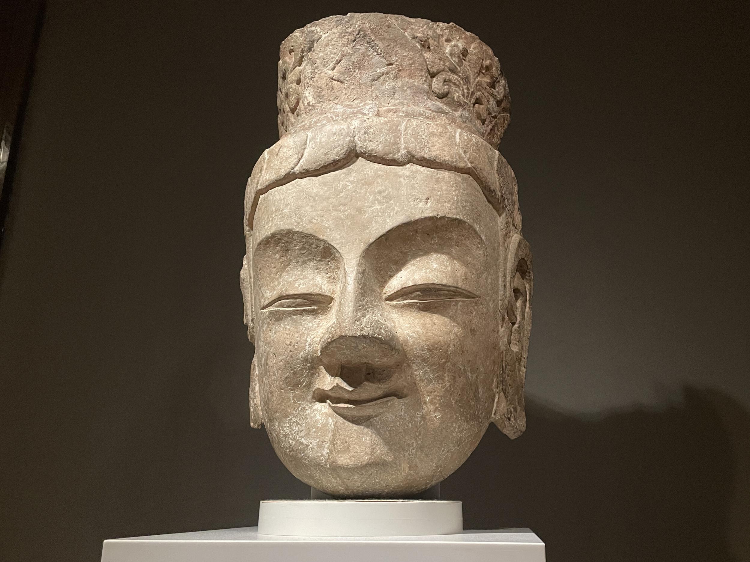 いずれも石窟の坐像や立像から頭部だけが持ち去られてきたものと思われます。冠を被った菩薩と団子状の髷だけの如来、上述のChatGPTの説明に合致しています。