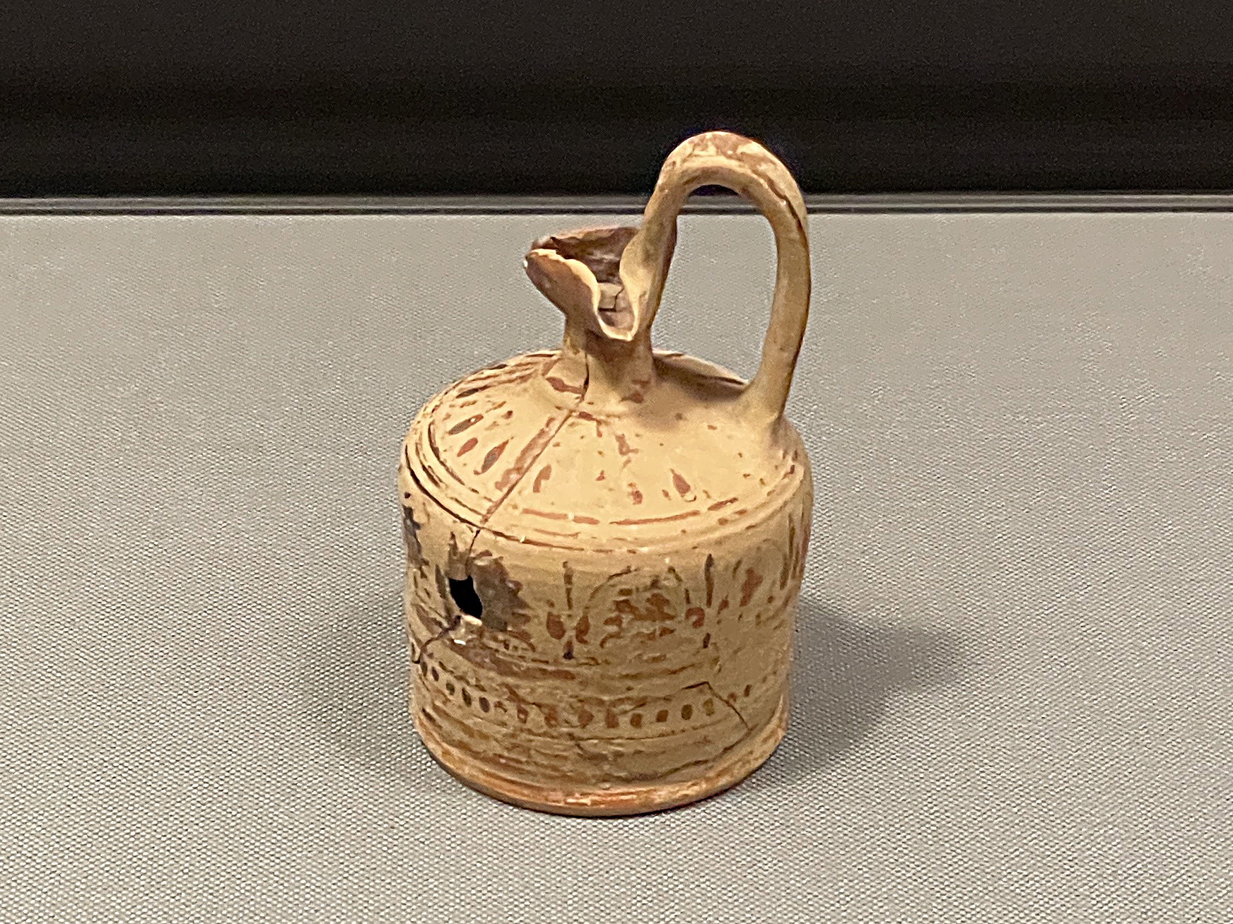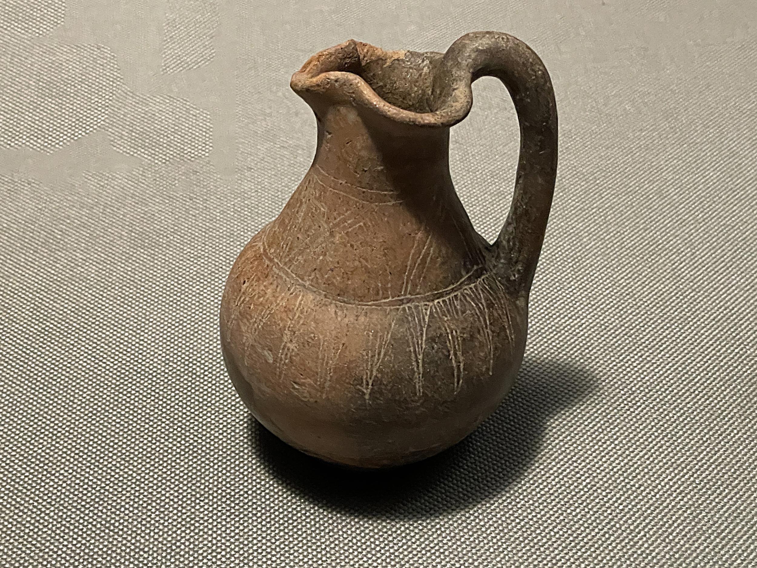 天理参考館で見た東地中海の香油壺と較べるとここに展示された香油壺は素朴、都市国家と農耕社会という大きな違いはあるものの、日本の弥生時代を彷彿とさせる要素を感じさせます。