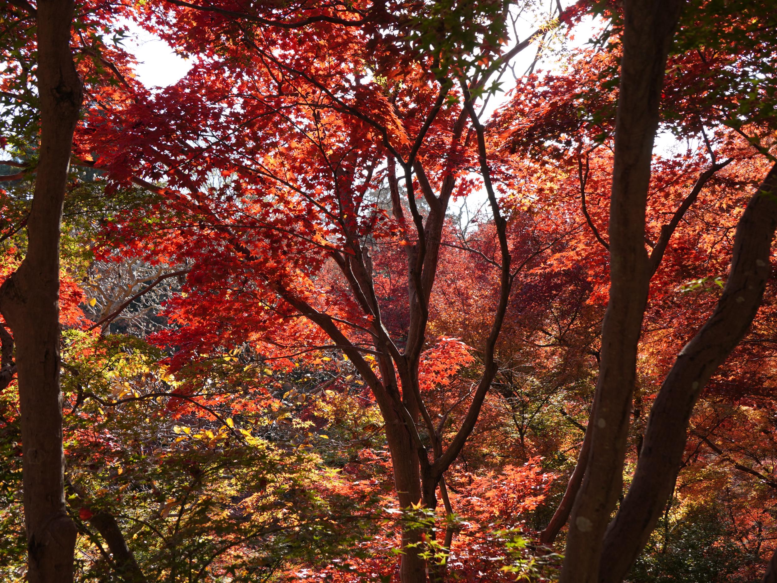 照明によるものと思われますが、離れるとピカピカ、近づくとしっとりとした金色、紅葉の赤ばかり見てきたので優しげにも感じます。俵屋宗達・風神雷神については山田五郎オトナの教養講座がとても為になります。モデルになったのが三十三間堂の風神と雷神ですが、恐ろしげな三十三間堂に対して、愛らしさすら感じさせます。