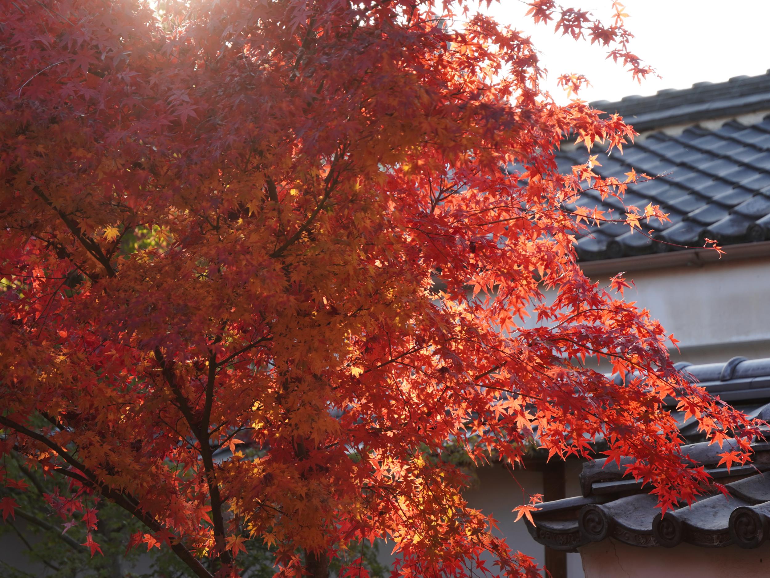子安塔から下りてきた坂道から本堂舞台と紅葉。音羽の滝前の滝の家さん、ここで「はてなの茶碗」を実演したのは12年前。