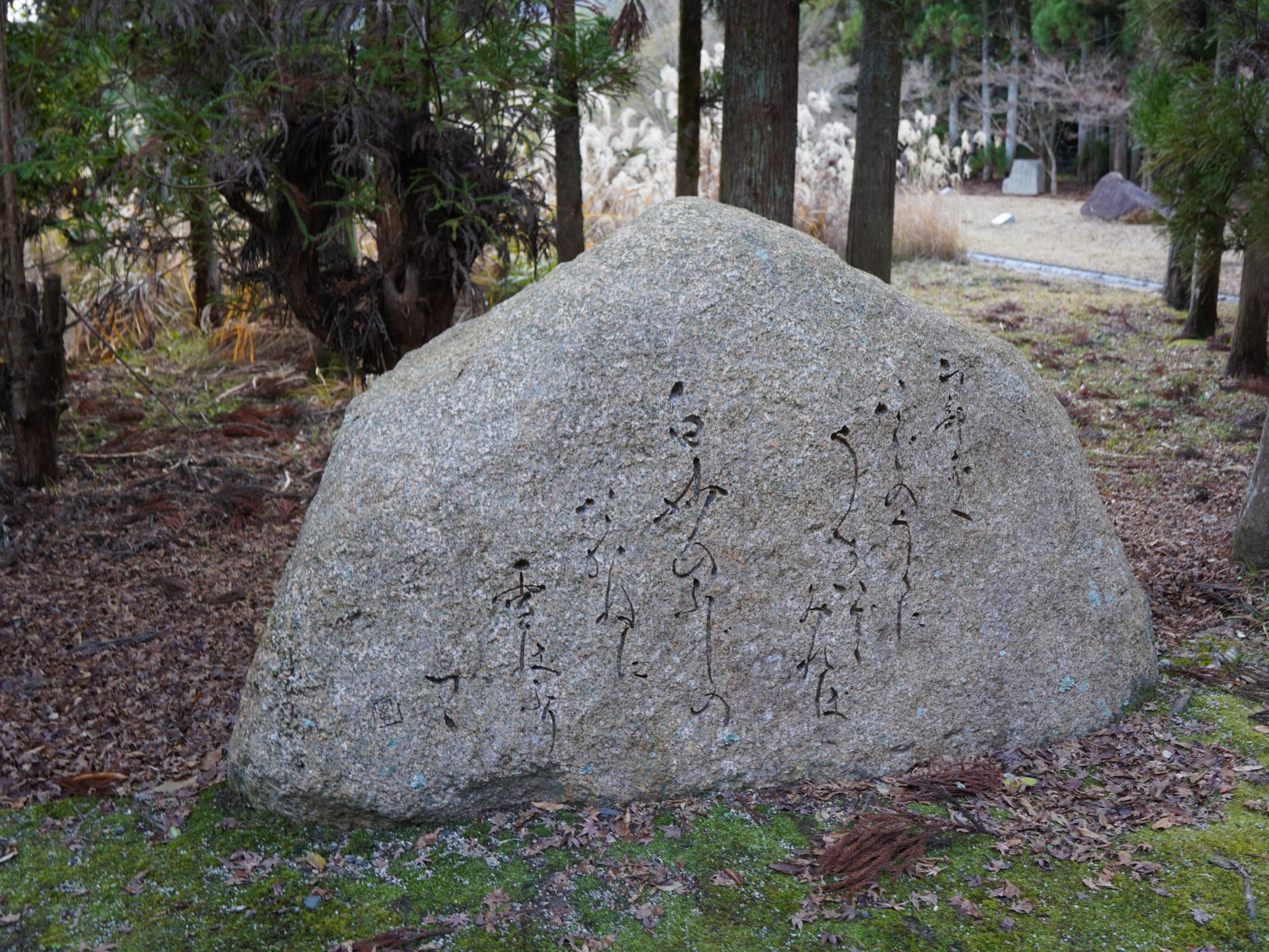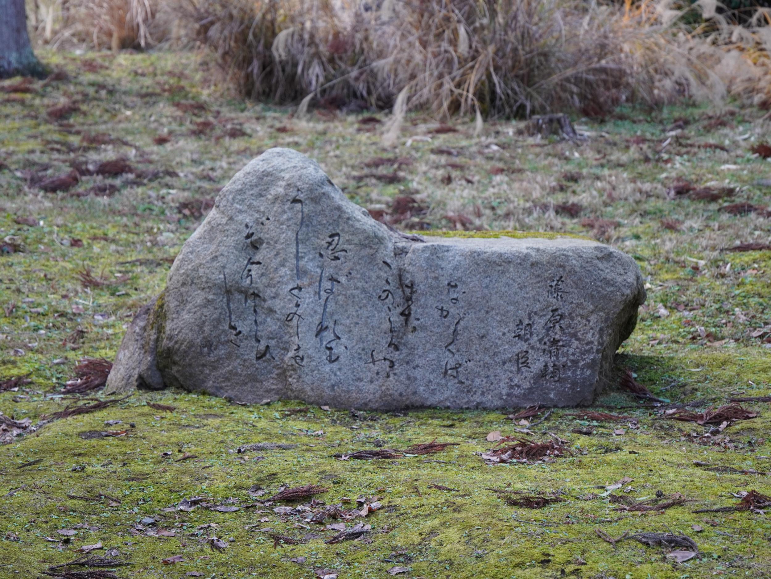 小倉百人一首歌碑MAPによると、ここ長神の杜に19首、亀山公園に49首。