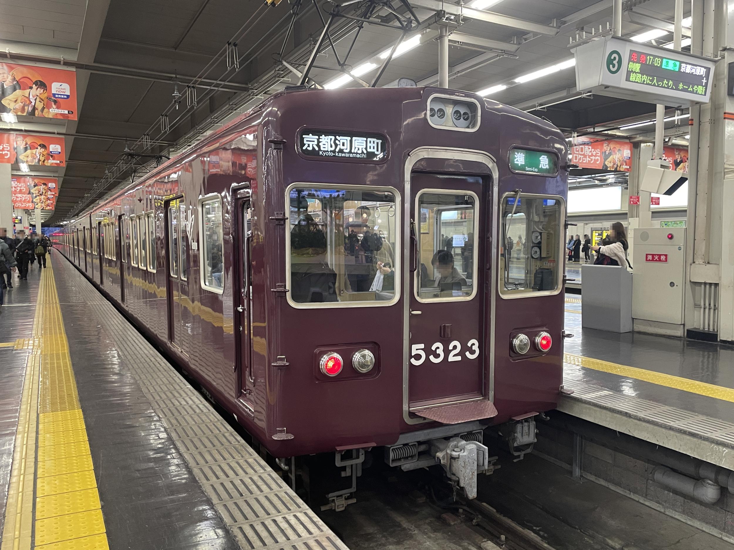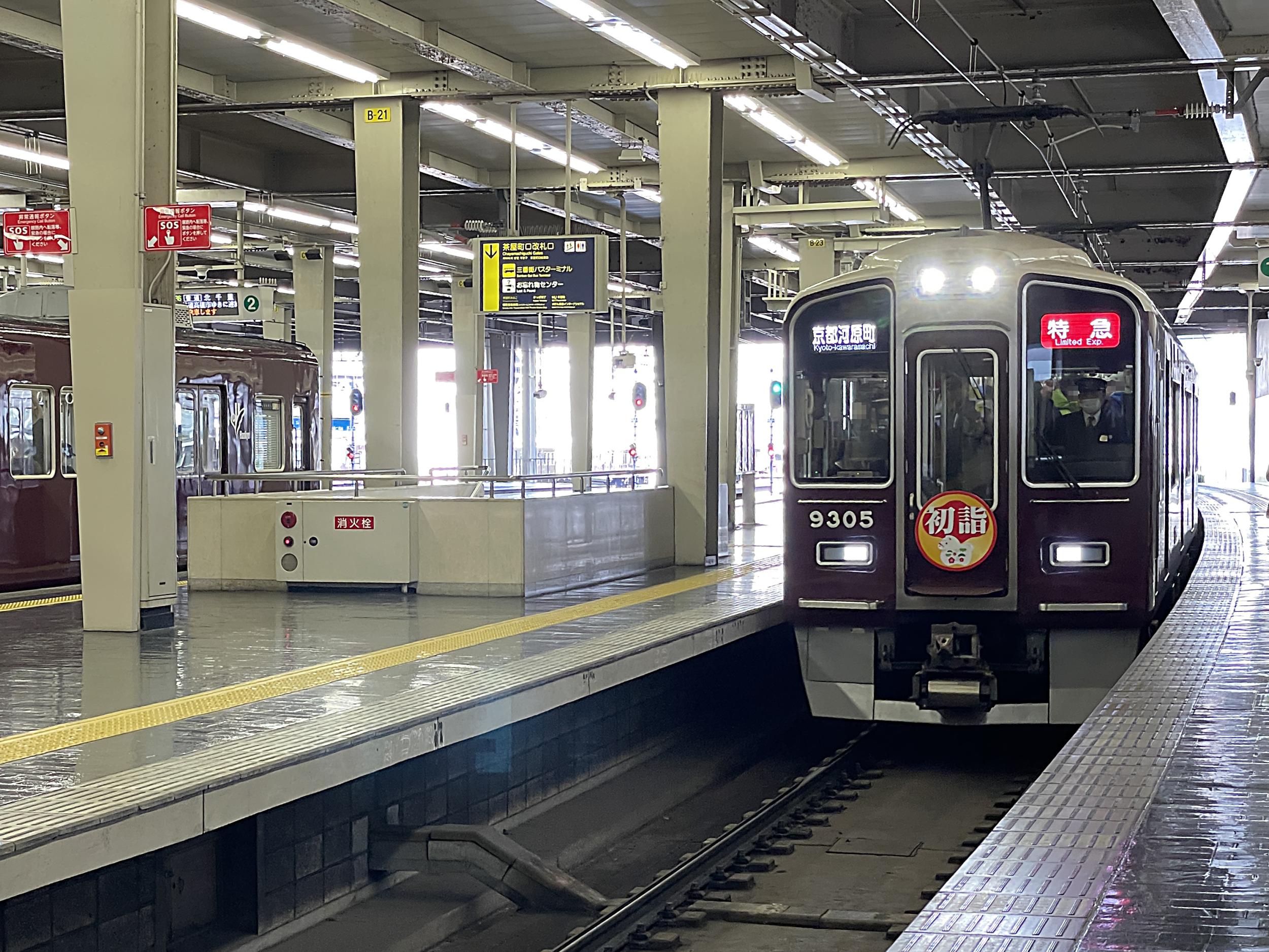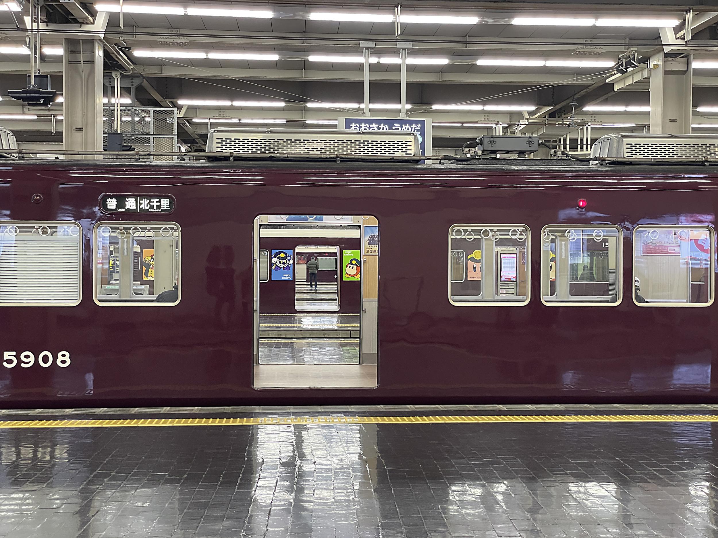 宝塚線星のカービィと並走し、十三には9000系神戸線特急と3本同時に到着。