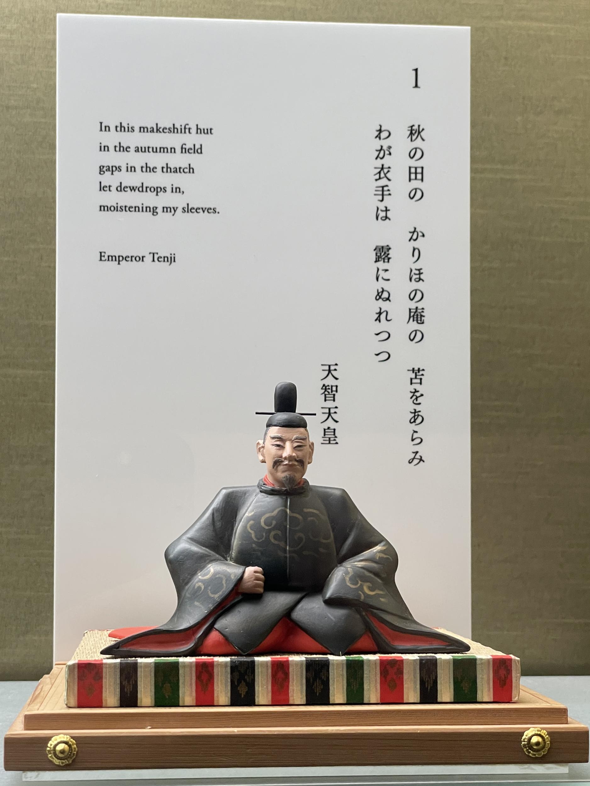 帰りがけに学芸員さんらしき女性を見つけ、百人一首フィギュアの作者は誰なのかを訊ねてみたところ、ヤマネという会社だと教えてくれました。調べてみると豊中にある模型製作会社で、嵯峨嵐山文華館の歌仙人形は同社の作品であることが記されていました。京阪電車のHOゲージ模型なども手掛ける一方、何と、近つ飛鳥博物館の仁徳天皇陵の巨大ジオラマや、弥生文化博物館の卑弥呼の館、奈良市役所の平城京ジオラマもこの会社の作品でビックリ。