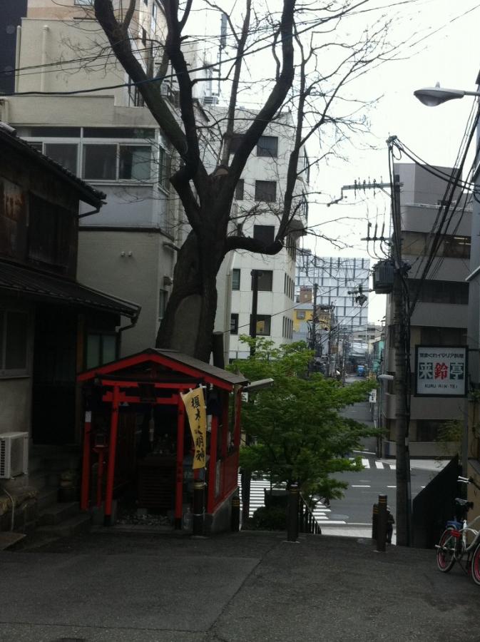 性同一性障害の中学生、大輔の家は長堀通りの北側にあって、自分を女の子にして欲しいとお参りする榎木大明神という神木がでてきます。知らなかったので早速行ってみました。祠から急な階段を下りると長堀通りの横断歩道があって、そのまままっすぐいくと、空堀商店街のアーケードに横から入ることになります。作品の描写通りでした。