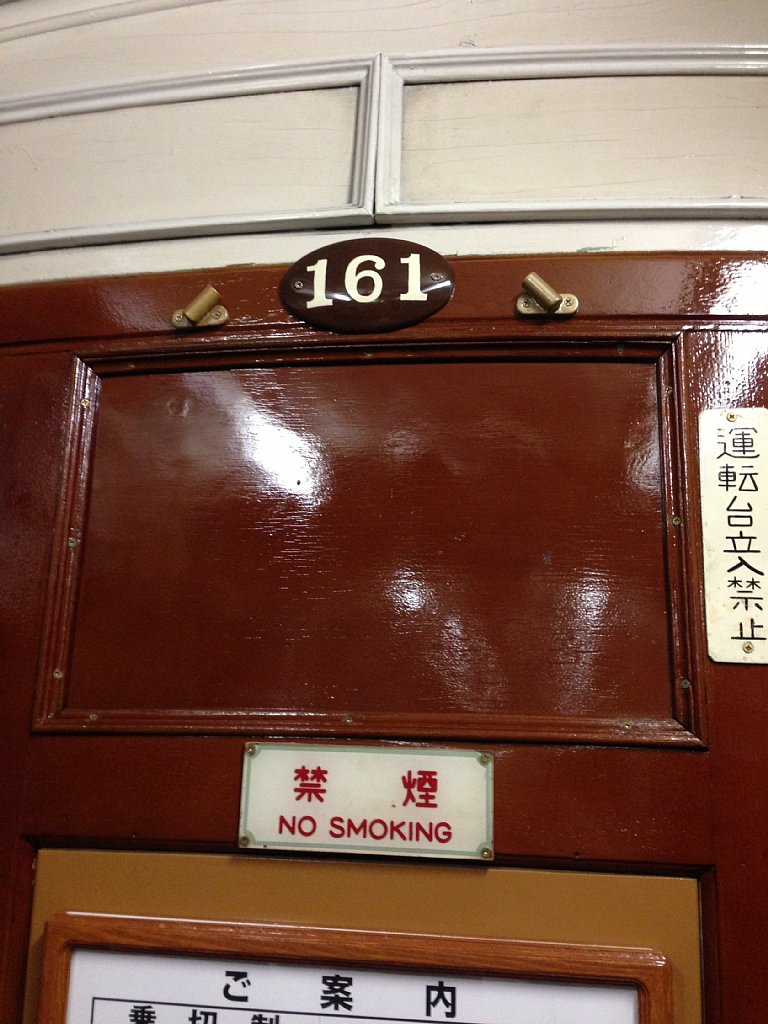 モ161は昭和3年生れ、日本最高齢の現役電車、一昨年9両ある仲間からこの1両が昭和40年代の状態に復元されたもので、普段は定期運行に入ることはなく、イベントや貸切専用に使用されています。