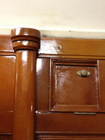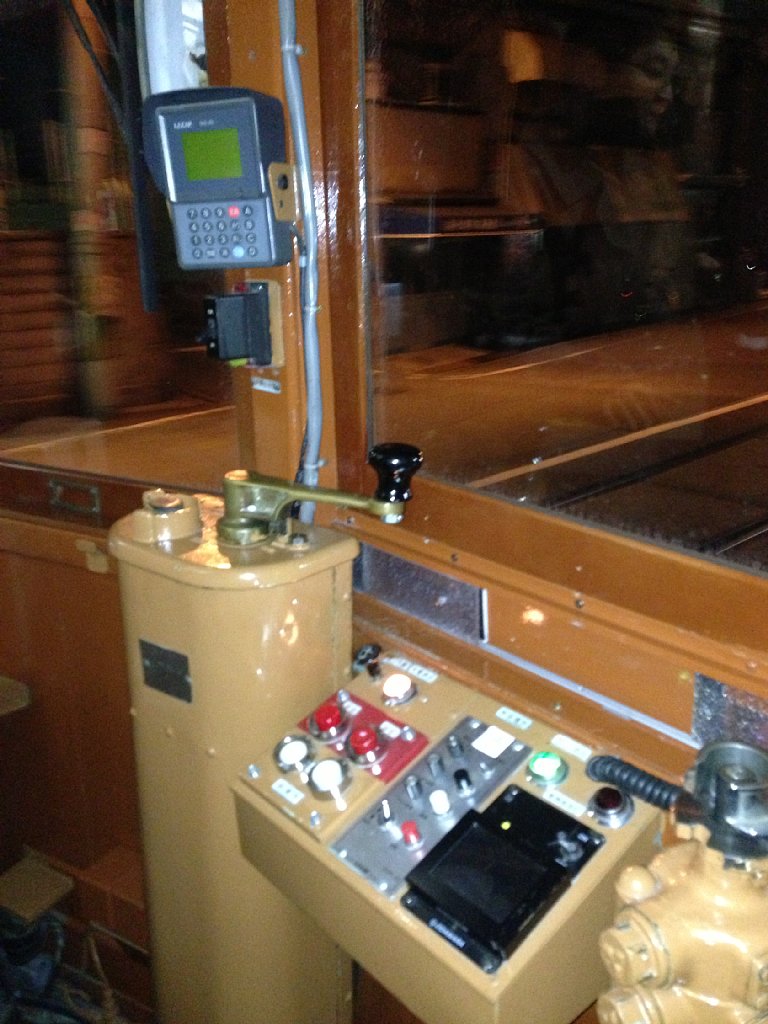 車内は木製部品が多く復元され、丁寧にニス塗り仕上げされています。