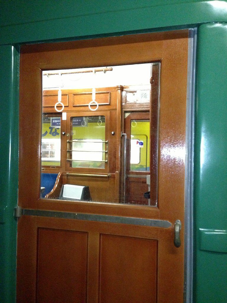 ワンマン化で締め切りになった後部ドアも木製のものに交換されています。「年参和昭」の製造所プレートはたぶんレプリカと思われますが、こだわりはすごい。