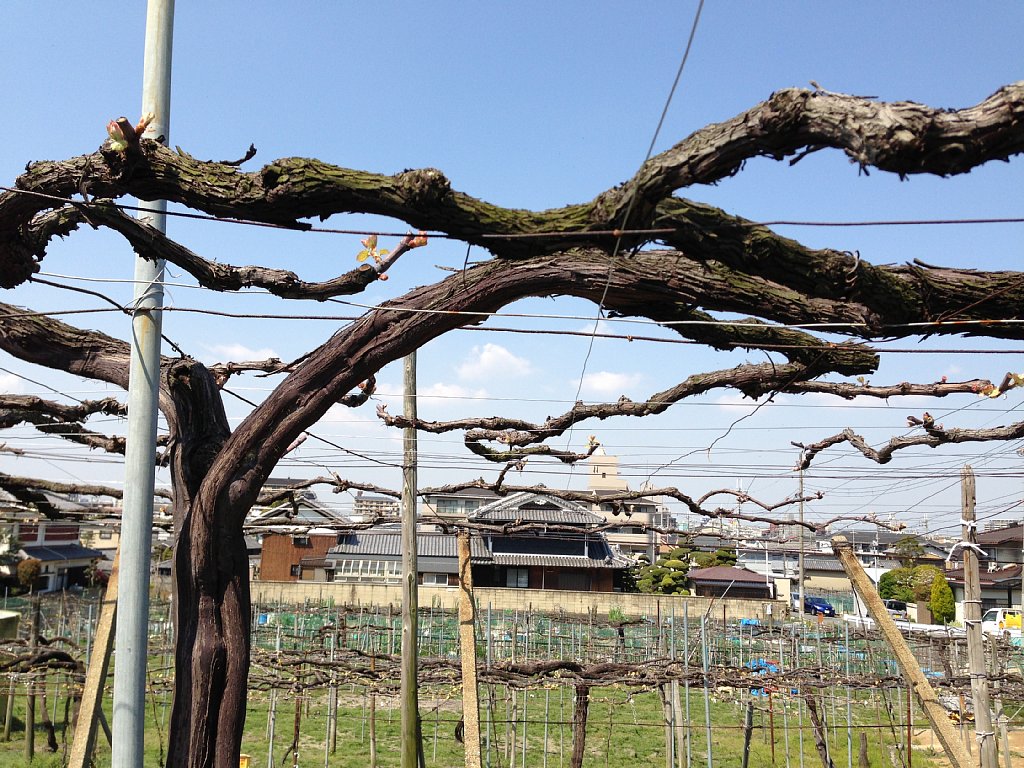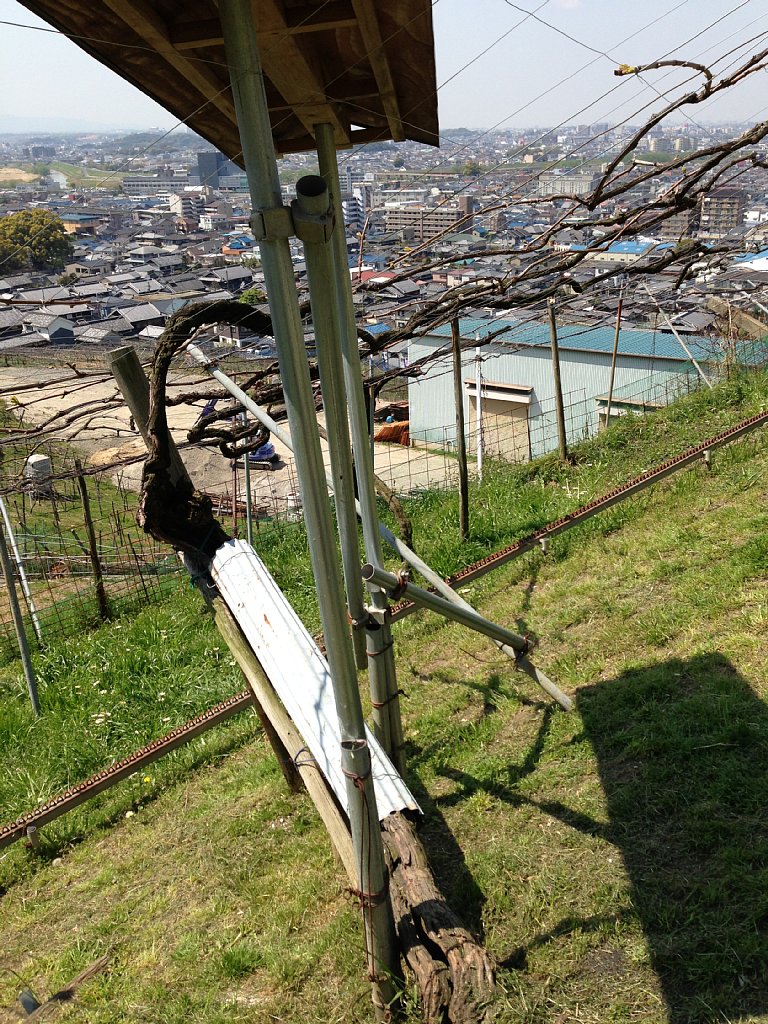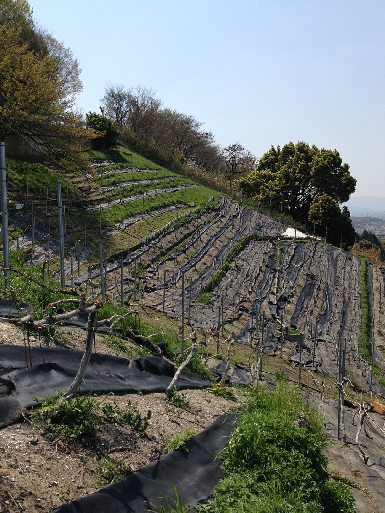ワイナリーの山手には上の方までぶどう畑が広がっています。ぶどうの産地というと山梨県を連想しますが、かつては大阪府が全国一のぶどう生産地だったそうです。