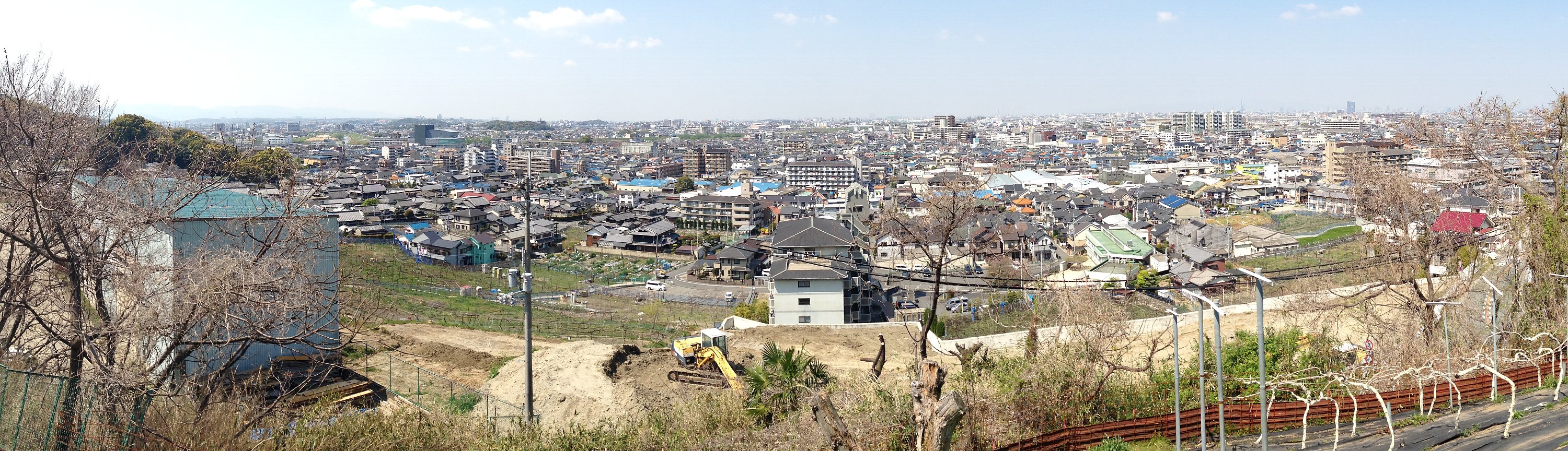 だいぶ上まで上がってきました。息が切れます。振り返るとこんな風景、遠くにあべのハルカスも見えます。拡大してみて下さい。