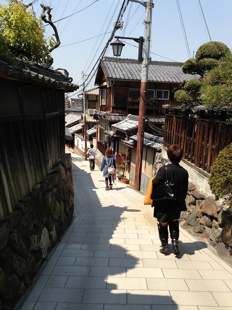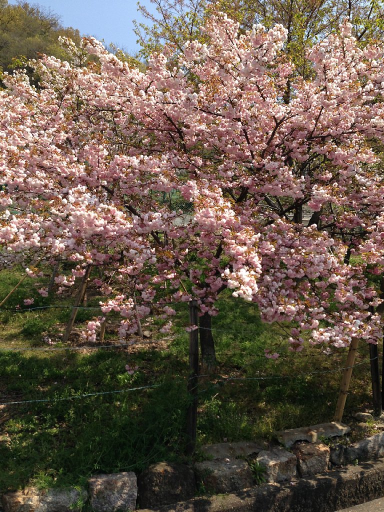 山桜を楽しみ、山を降りて古い町並みに戻ります。