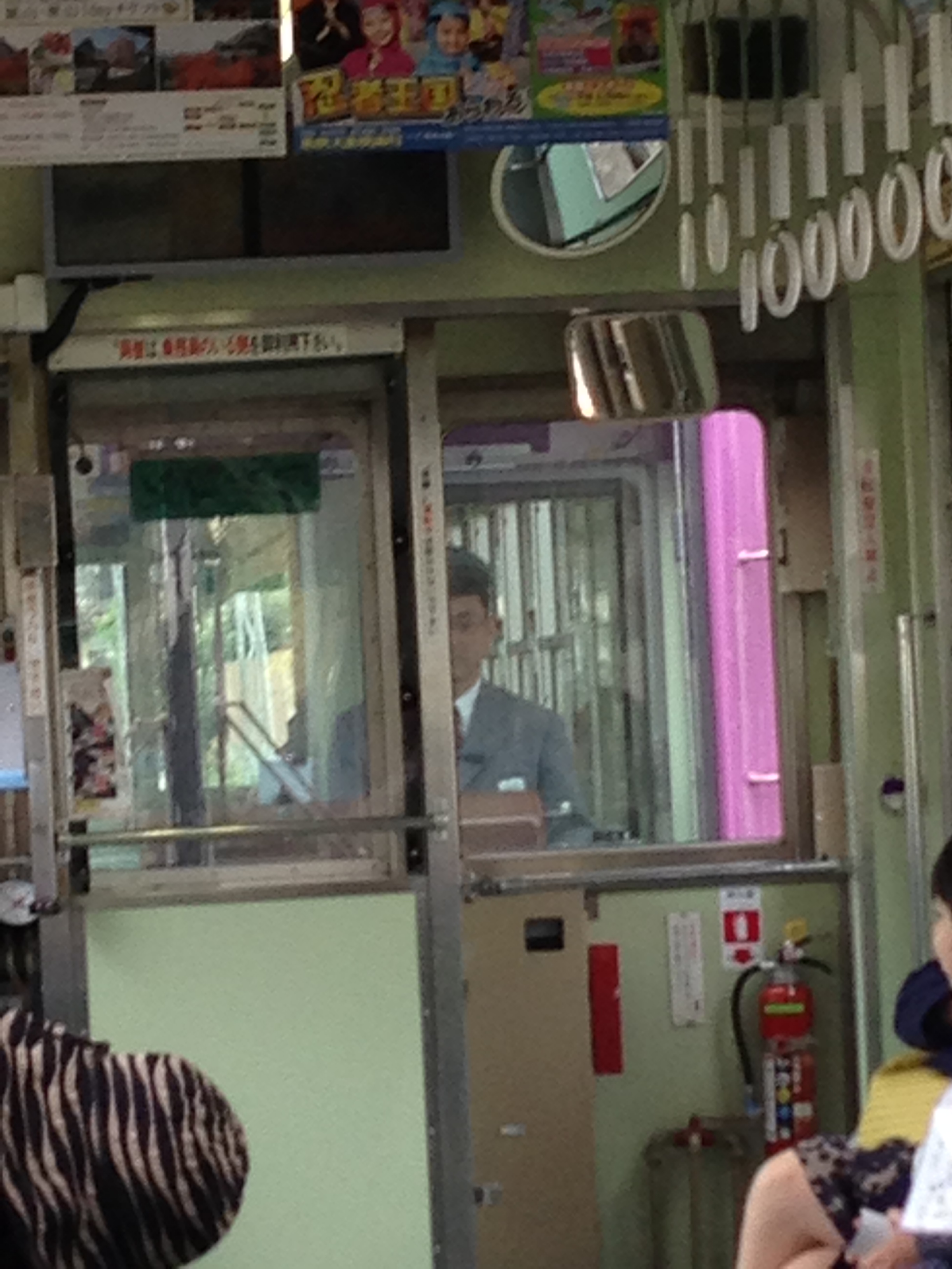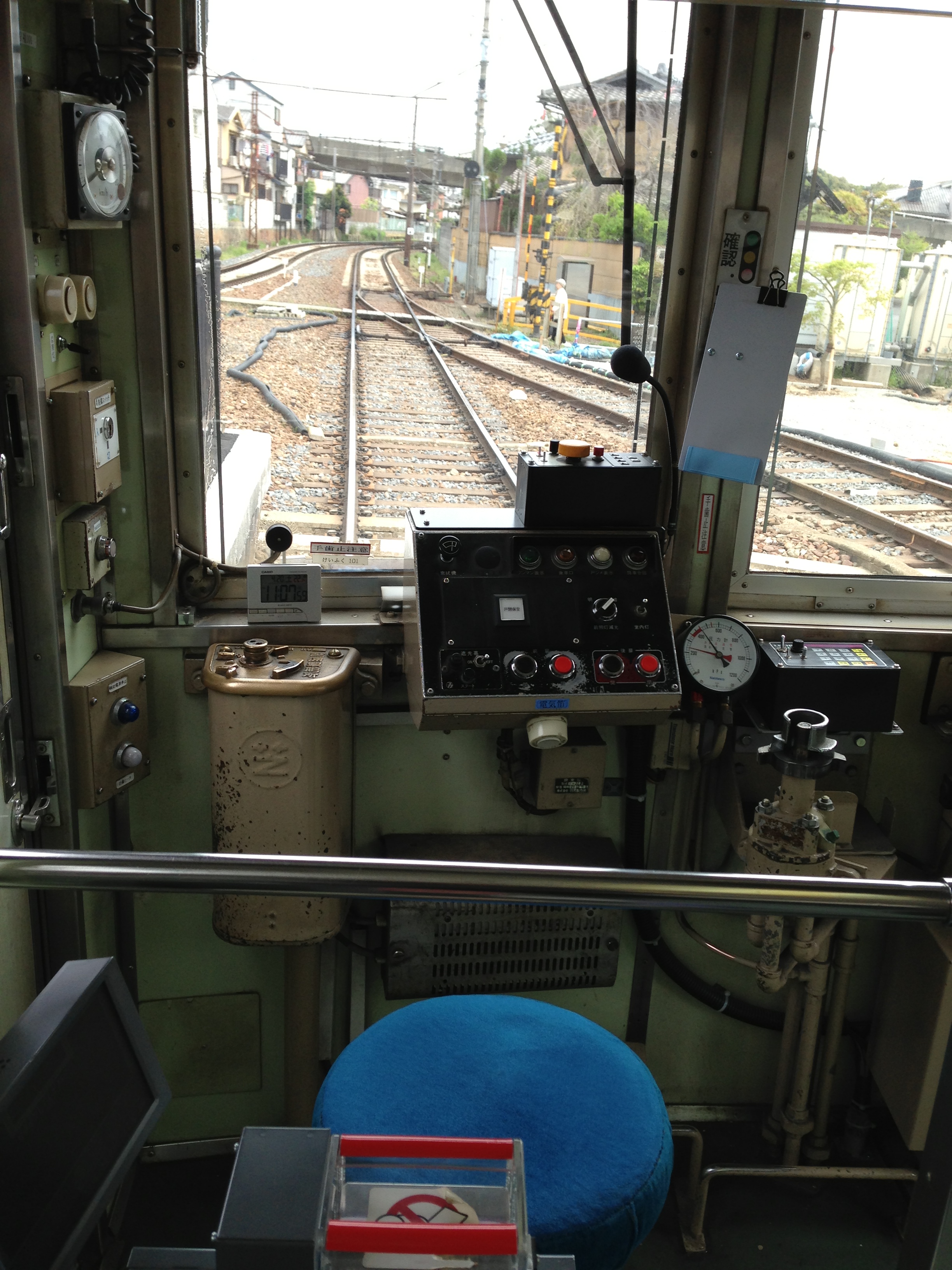 2両目の電車にも運転手さんが乗務していて何か変な感じです。総括制御運転(複数の車両を一人の運転手が制御)ですが、ワンマン運転用の貫通路がない車両の連結運転で、かつ殆どの駅が無人駅なので、集札等の車掌さん的な乗務のようです。