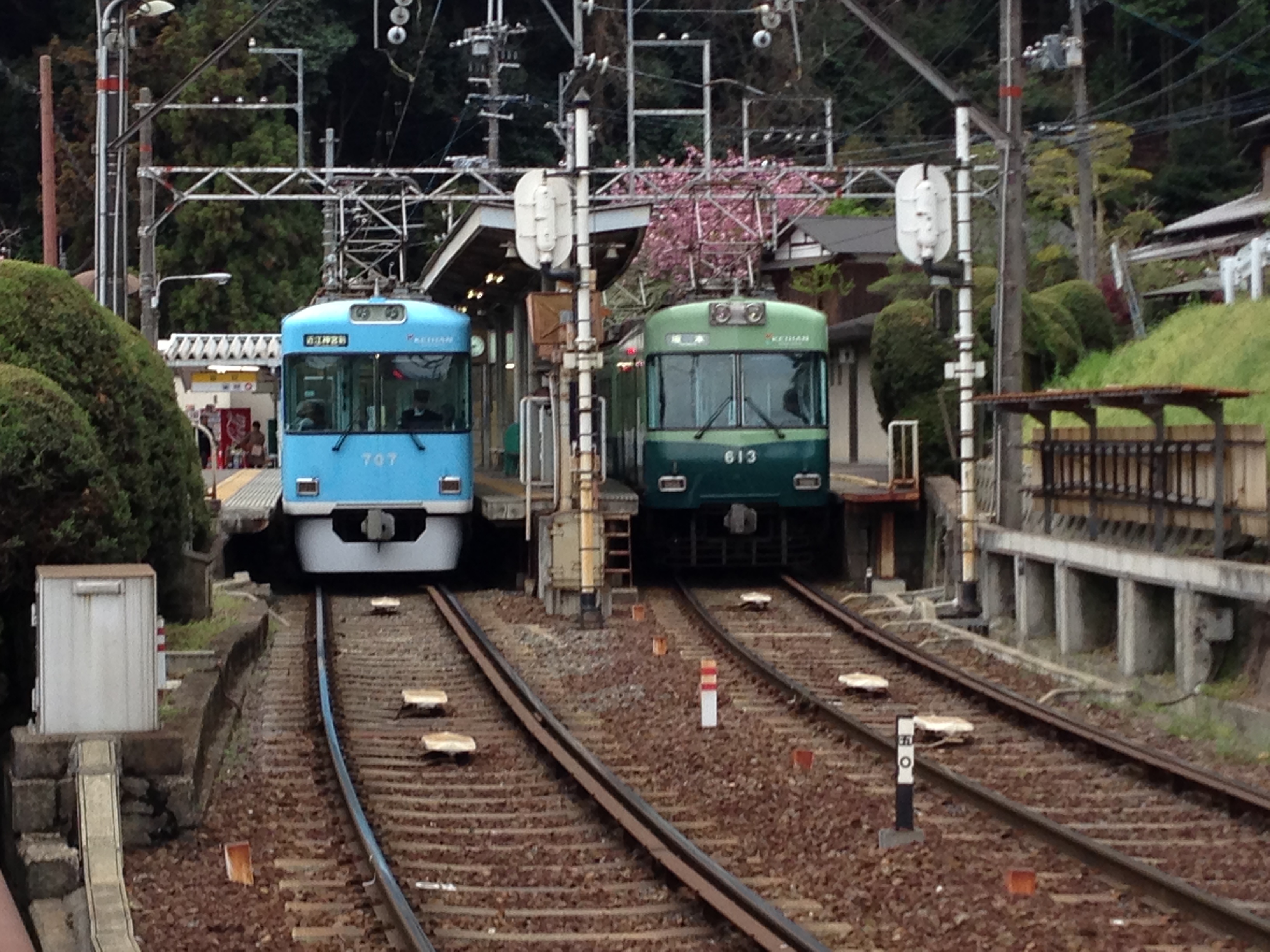 石山寺駅での600形と700形のツーショット、よく似てますが、600形は昭和59年から63年製、700形は平成生れです。飛び出した前照灯と下ぶくれの丸みのある600形の方がいいな。