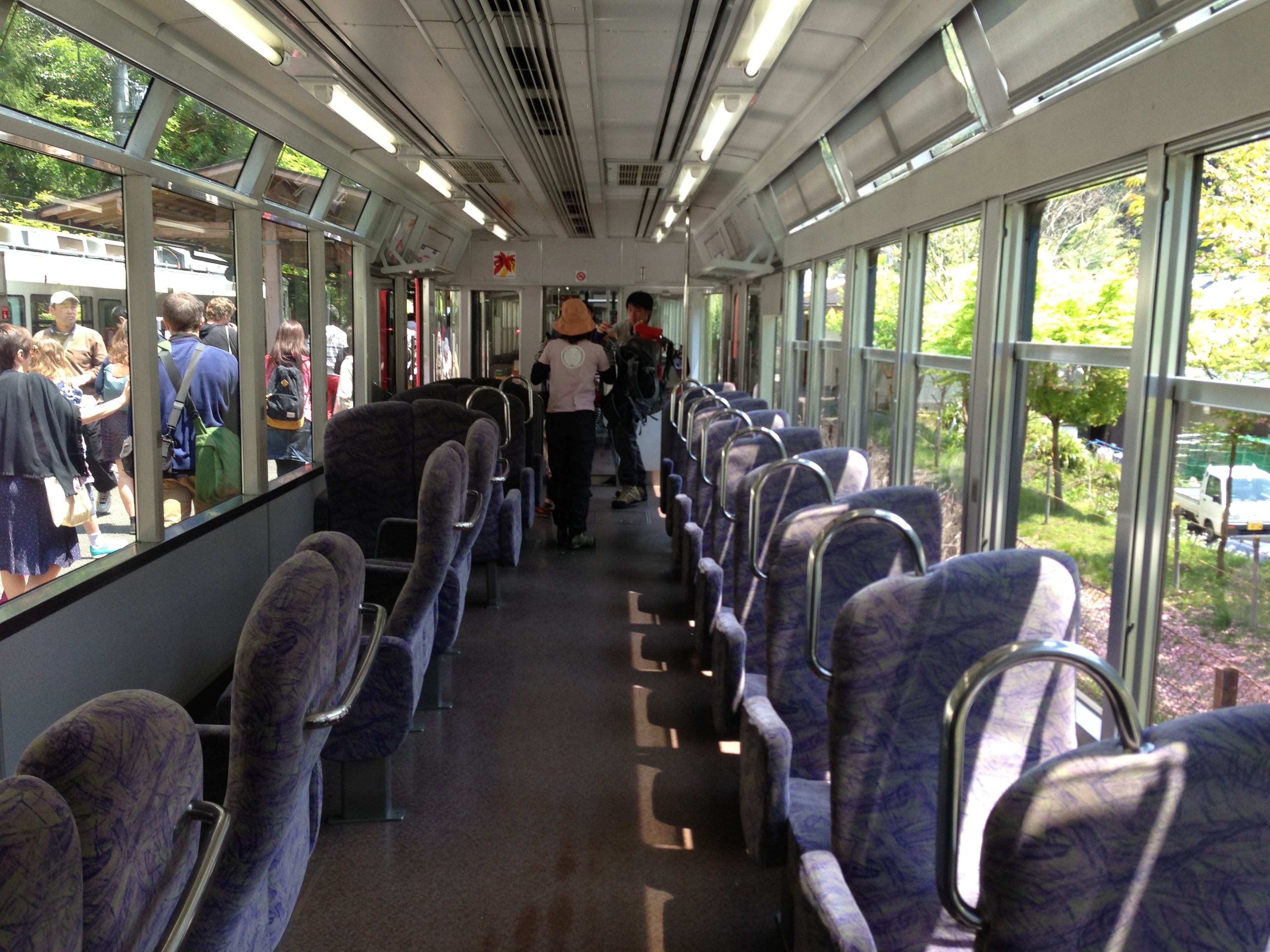 ロングシートで電車の中に向かって座るのとは逆に窓に向かって座るのは初めての経験、よくちっちゃな子供がする靴を脱いでロングシートに膝を立てて窓の外を見ると似た感覚です。