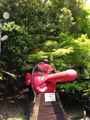 鞍馬駅では天狗とデナ21のカットアウトが出迎えてくれます。