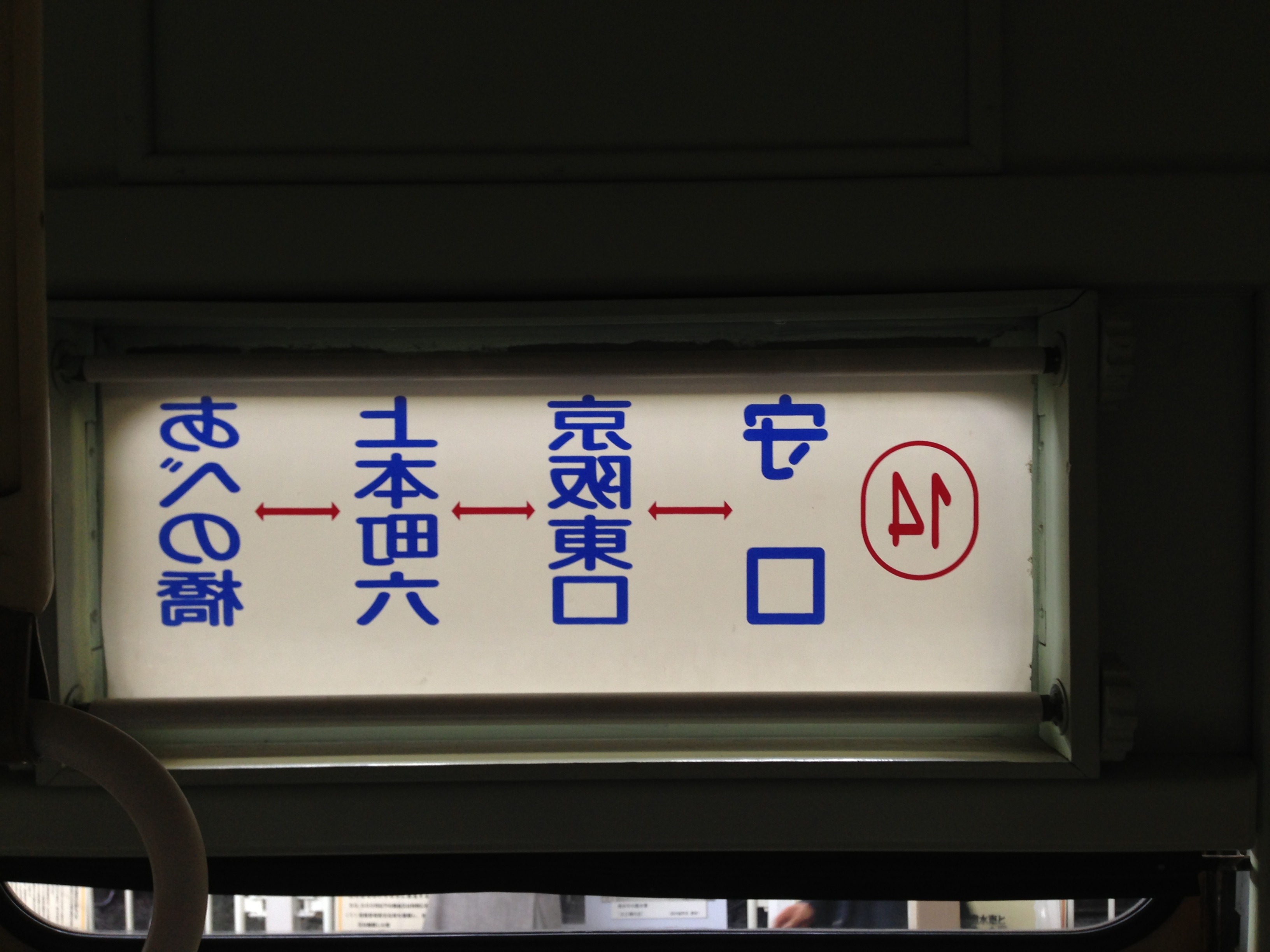 1644の車内と系統表示幕、千日前通りを走っていた時のものです。これが今も走っていれば、なんばまで行くのが、どんなに楽しくて便利だったことか。