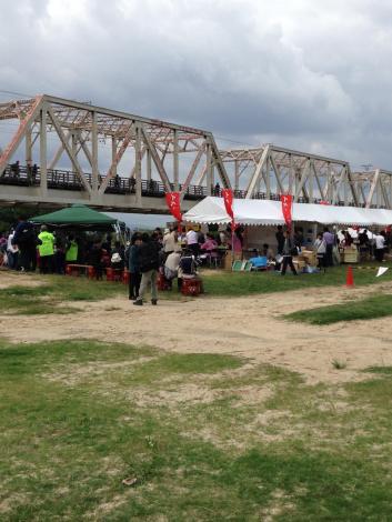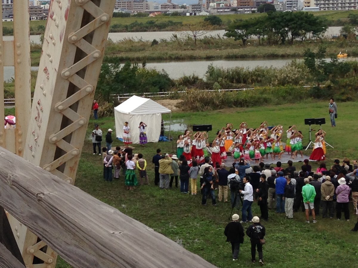 昨日の赤川鉄橋は既に自転車では殆ど渡れない状態になっていました。鉄ちゃん以上に、地元の人たちが多いみたいです。マスメディアも複数取材にきてました。河原では何故かフラダンス。