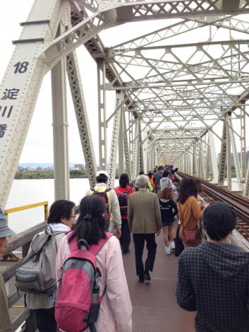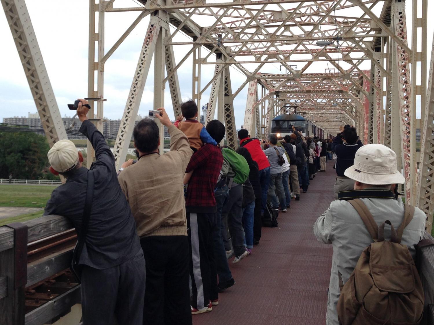 橋の上はどこの有名観光地?という状況でした。ちなみに人は通れなくなるものの、橋が取り壊されることはなく、貨物列車はこれまで通り走る訳で「さよなら」はちょっとおかしいです。