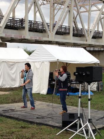 旭区主催の「さよなら赤川鉄橋」というイベントです。ストリートミュージシャンというふれこみでしたが、やたらと上手い。調べてみたらX+というユニットで結構メジャーなようです。