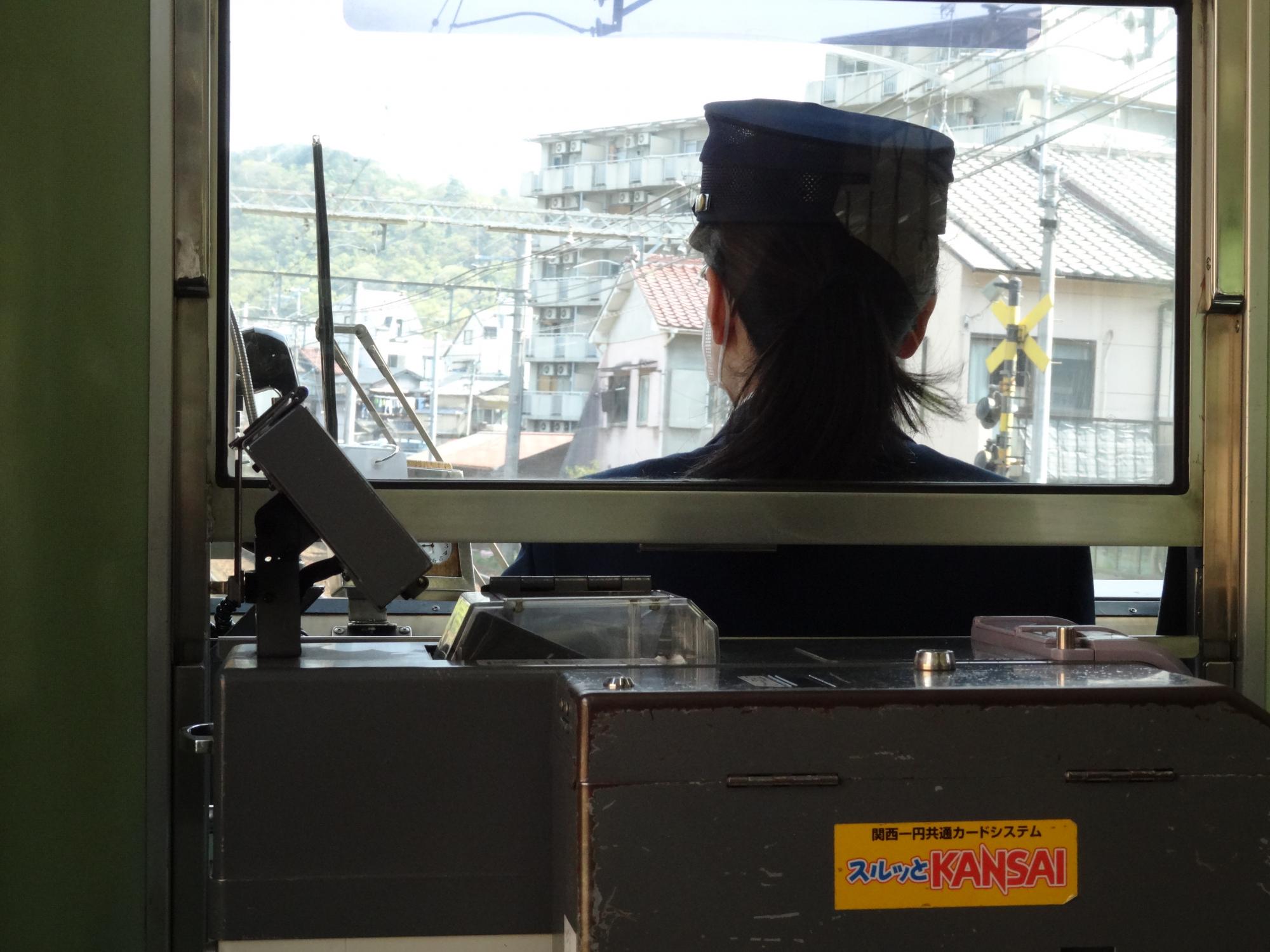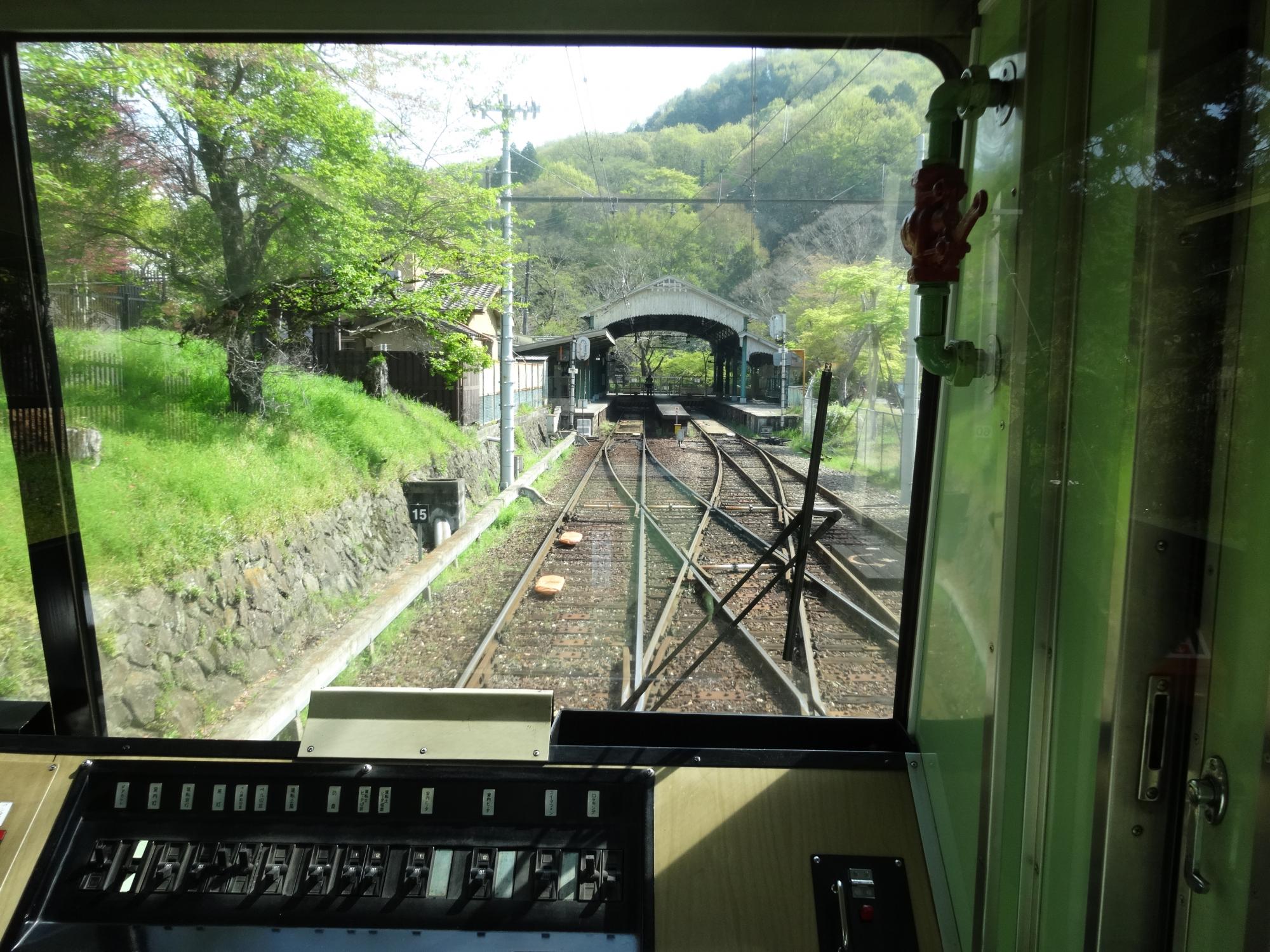 叡山ケーブルが日本一の高低差に対して、坂本ケーブルは2.0kmで日本一の路線長です。叡山ケーブルの女性従業員さんのソフト路線に対して、こっちはビシッと鉄道マンの制服を着こなした70代とおぼしき運転手さんの硬派路線です。マニュアル棒読み風の叡山ケーブルよりこちらの年配運転手さんの説明が楽しいです。