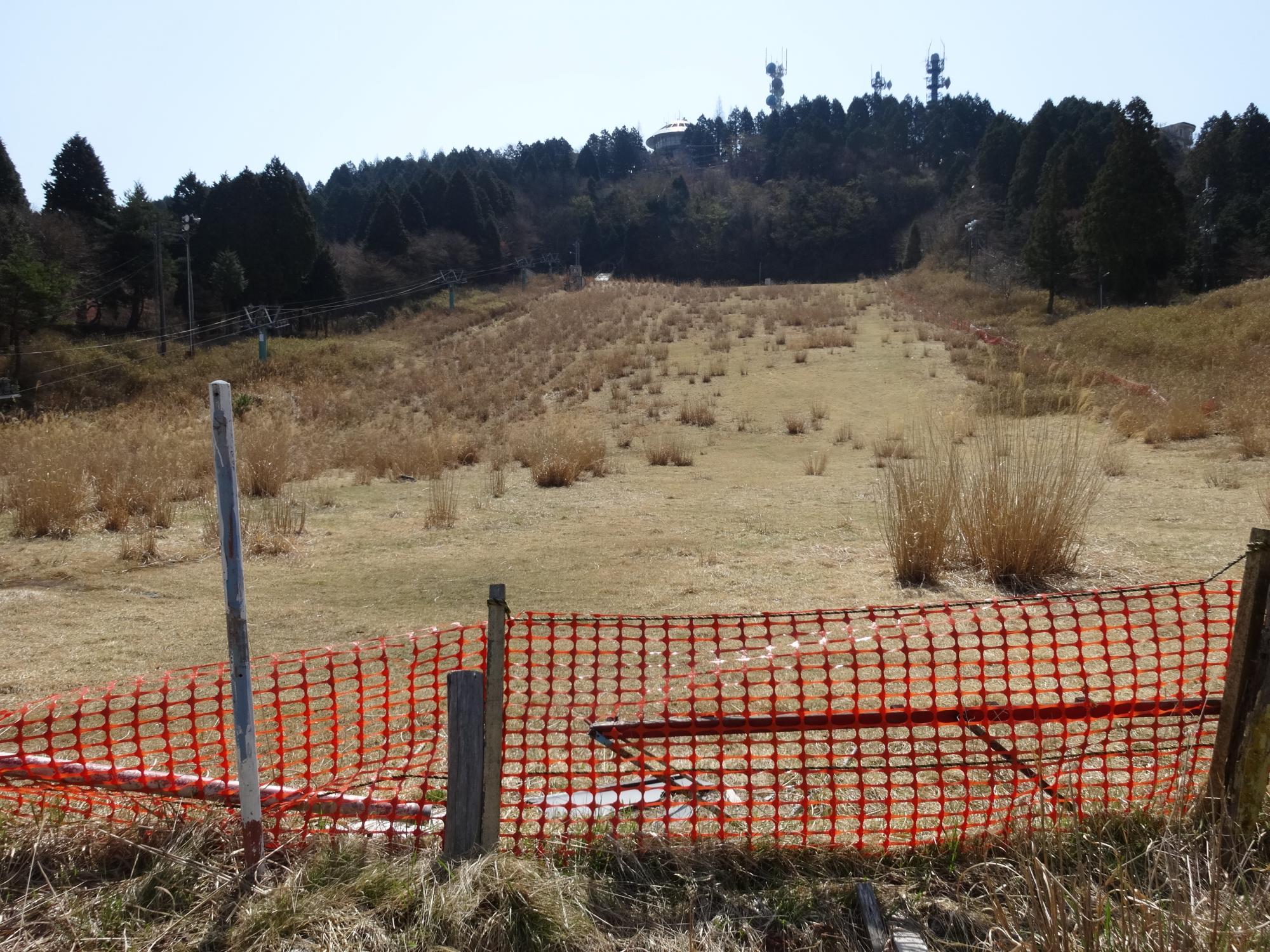 少し行くと広い空間が広がります。人工スキー場の跡で2001年まで営業していたそうです。