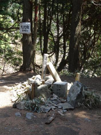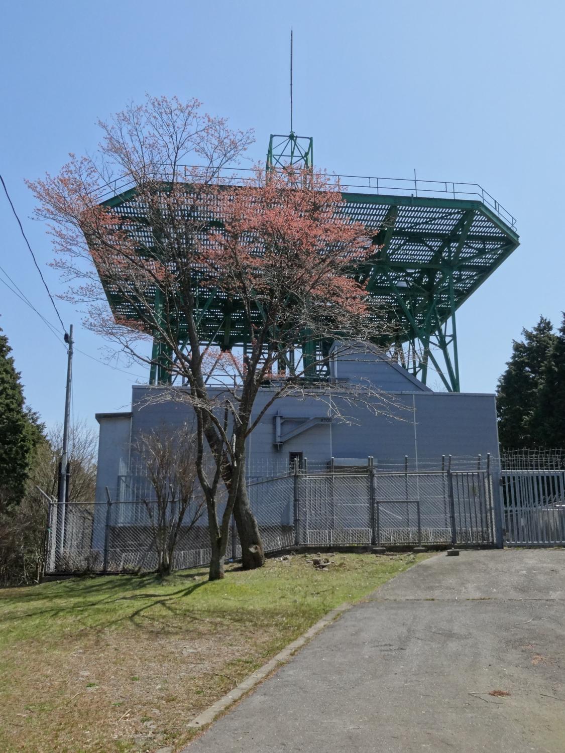 この道が大変でした(地図上の2)。Google Mapには何も描かれていないので、ジグザグを描いておきました。最初は石段だったものの、つづら折りの急な獣道のような道になり、滑り落ちるとオシマイ、といった感じのところを20分くらい歩いたでしょうか、電波塔のある広い空間にたどり着きました。