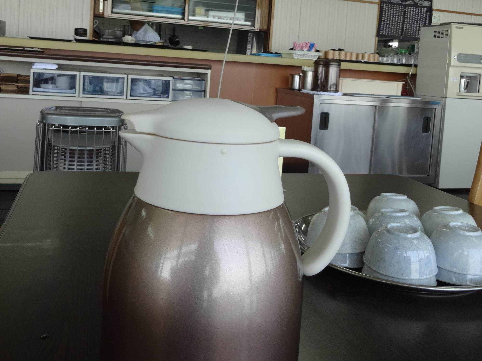 冷えた体を鍋焼きうどんであたためました。ポットがトリに見えます。相当重症になったみたいです。