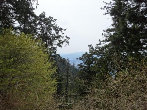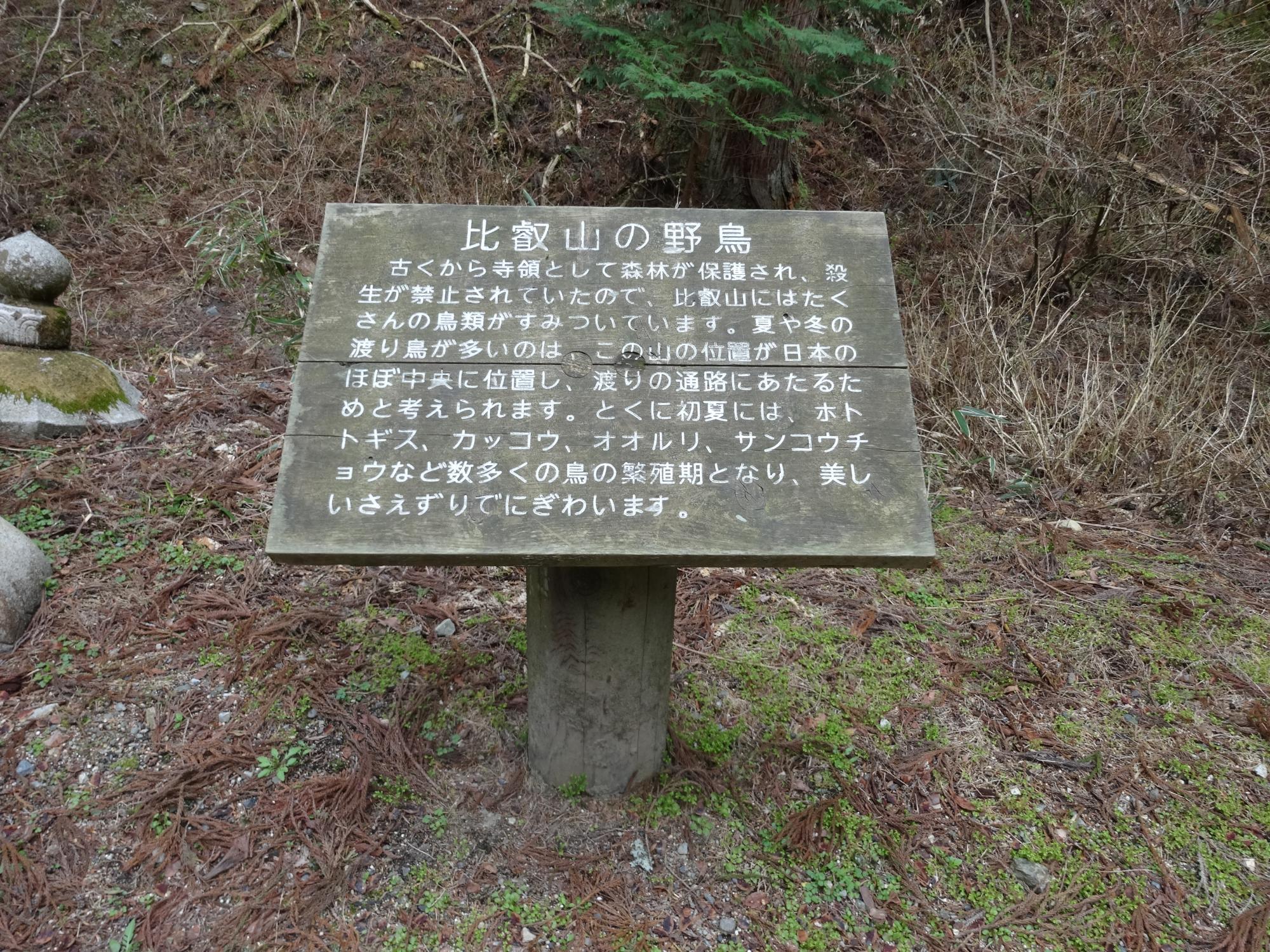 このあたりが比叡山の山頂で、この上にさらに小さな小山があって、そこに大比叡の三角点がありました。聞いたことのない野鳥の鳴き声がしきりに聞こえるのですが、姿はどうしても見えません。ここまで歩いてまともに見ることができたのはシジュウカラだけです。
