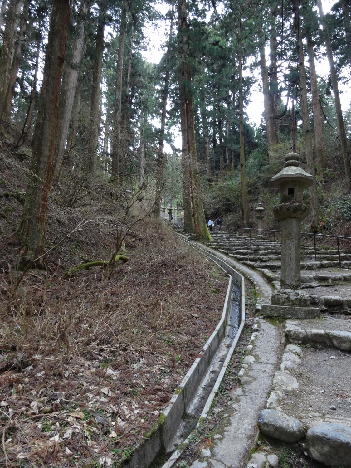 坂道じゃなくて、かなりきつい石段で膝はガクガク。