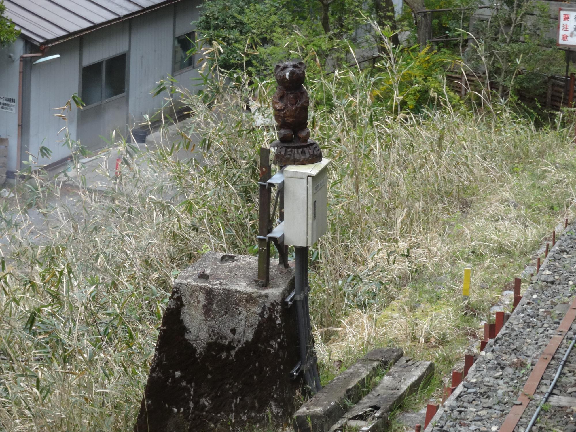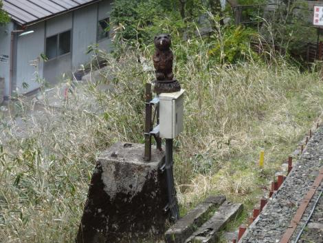 夕方には鹿やタヌキもでてくるそうですが、残念ながらお見かけできませんでした。その代わり、沿線の鉄道設備にいろんな動物の木彫がおいてありました。