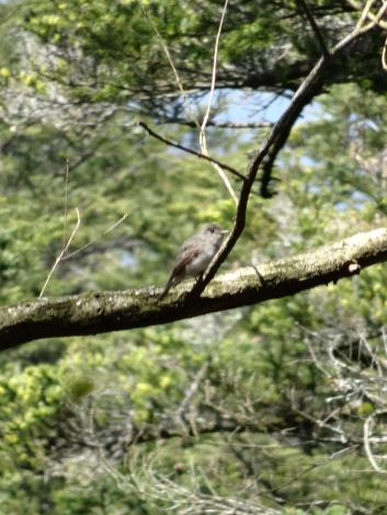 飛んでいる鳥は時々見つけられるようになったものの、木が高いので梢にとまる鳥の姿はなかなか見つけられなかったのですが、ようやく見つけました。たぶんジョウビタキ♀だと思います。