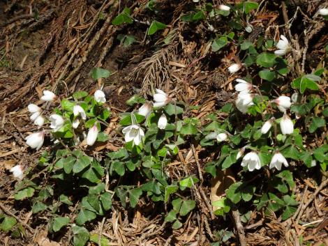 この白い花がところどころに群生しています。二輪草でしょうか?葉っぱが違うみたいです。