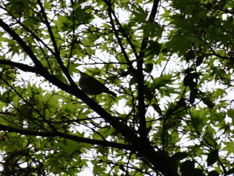 比叡山高校の前から日吉神社、駅の方へみどりのもみじの並木が続いています。樅の木とかよりずっと背が低いのでトリが見つかりそうです。