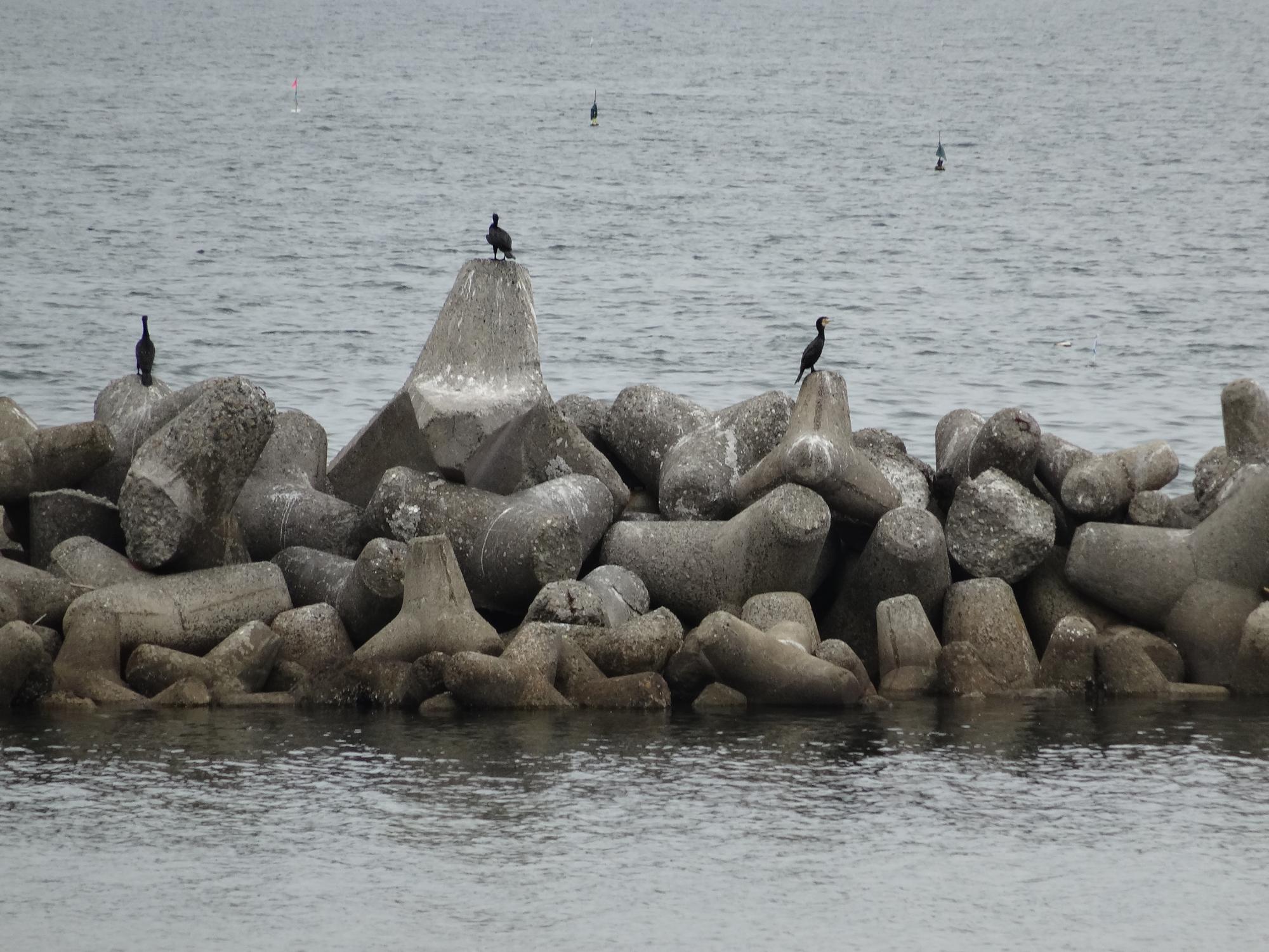 岸壁を上がってみると、テトラポッドにウが止まっていたりと、長閑な風景が広がっています。
