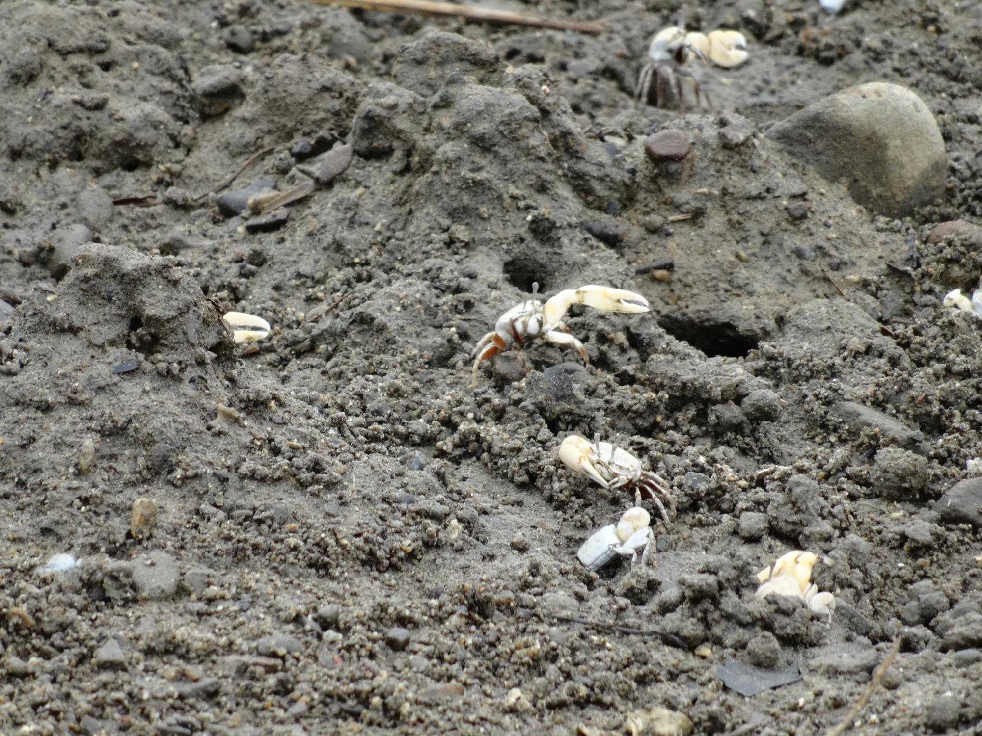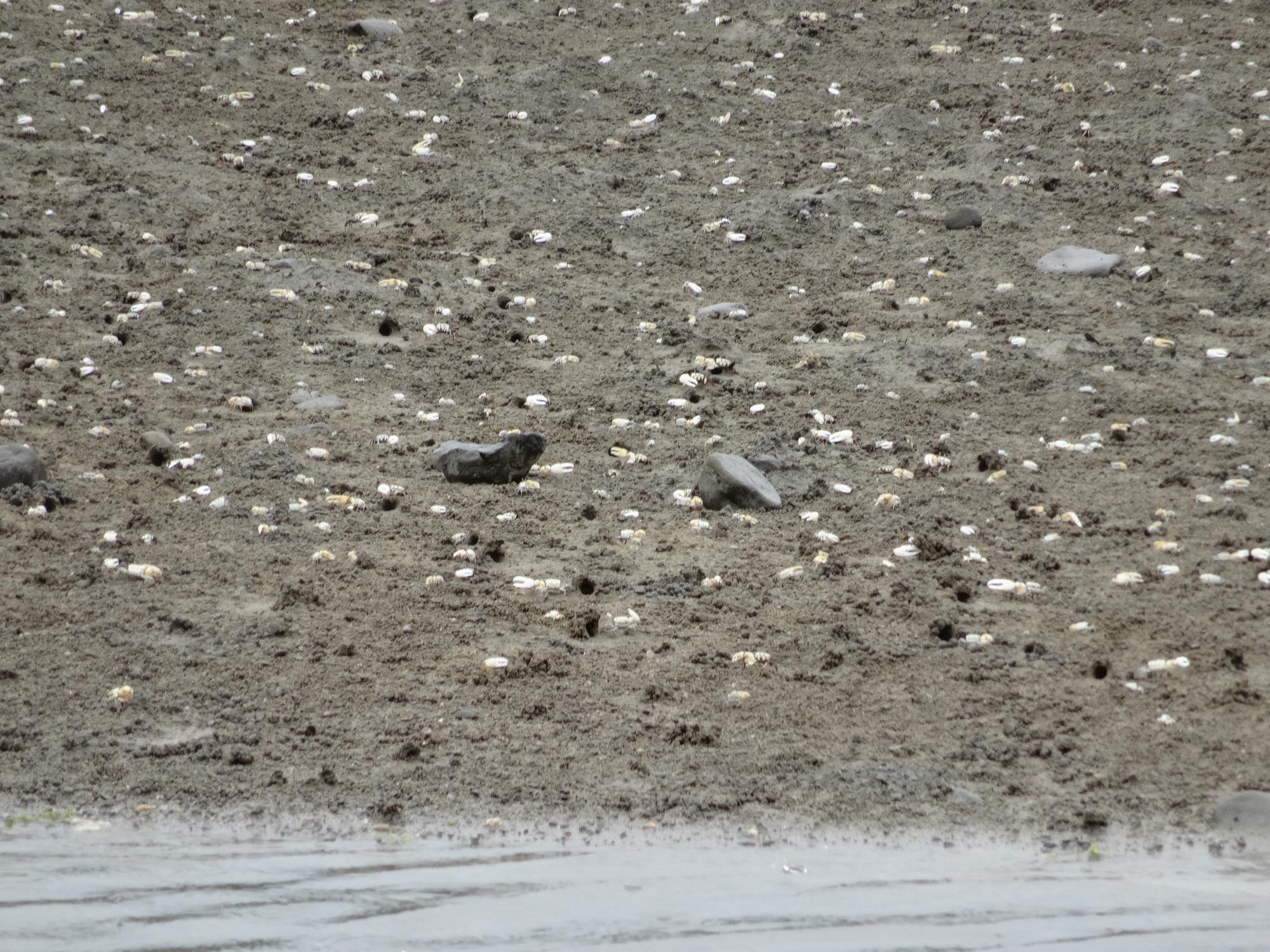 歩いて行くことはできませんが、河口の中洲の干潟にもウジャウジャいます。この白いの全部ハクセンシオマネキのようです。