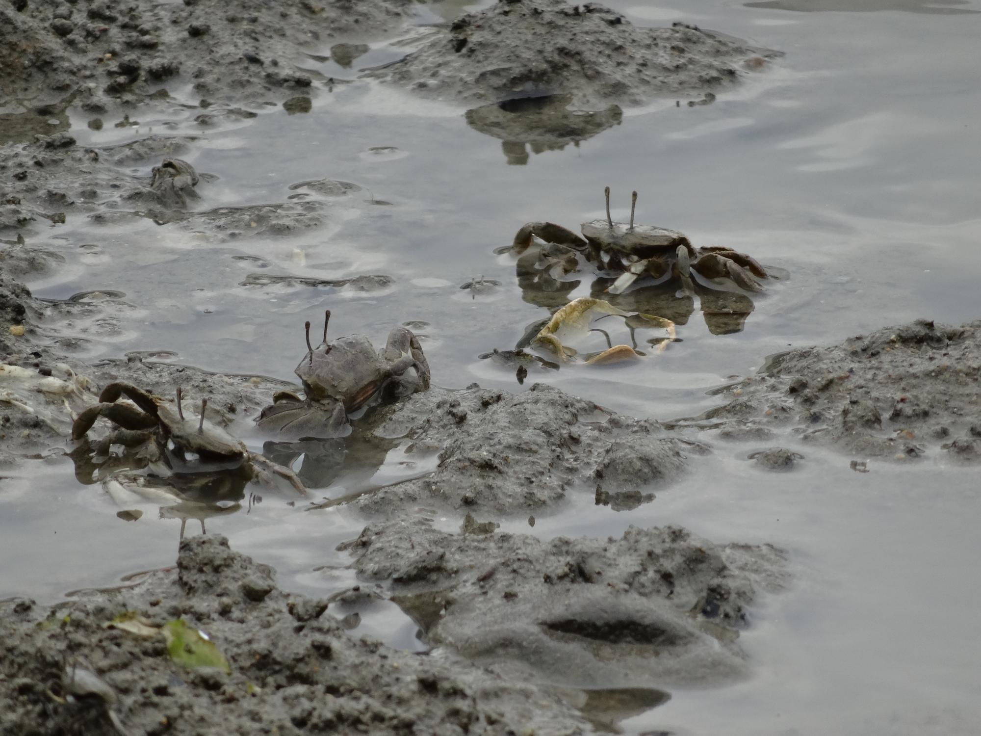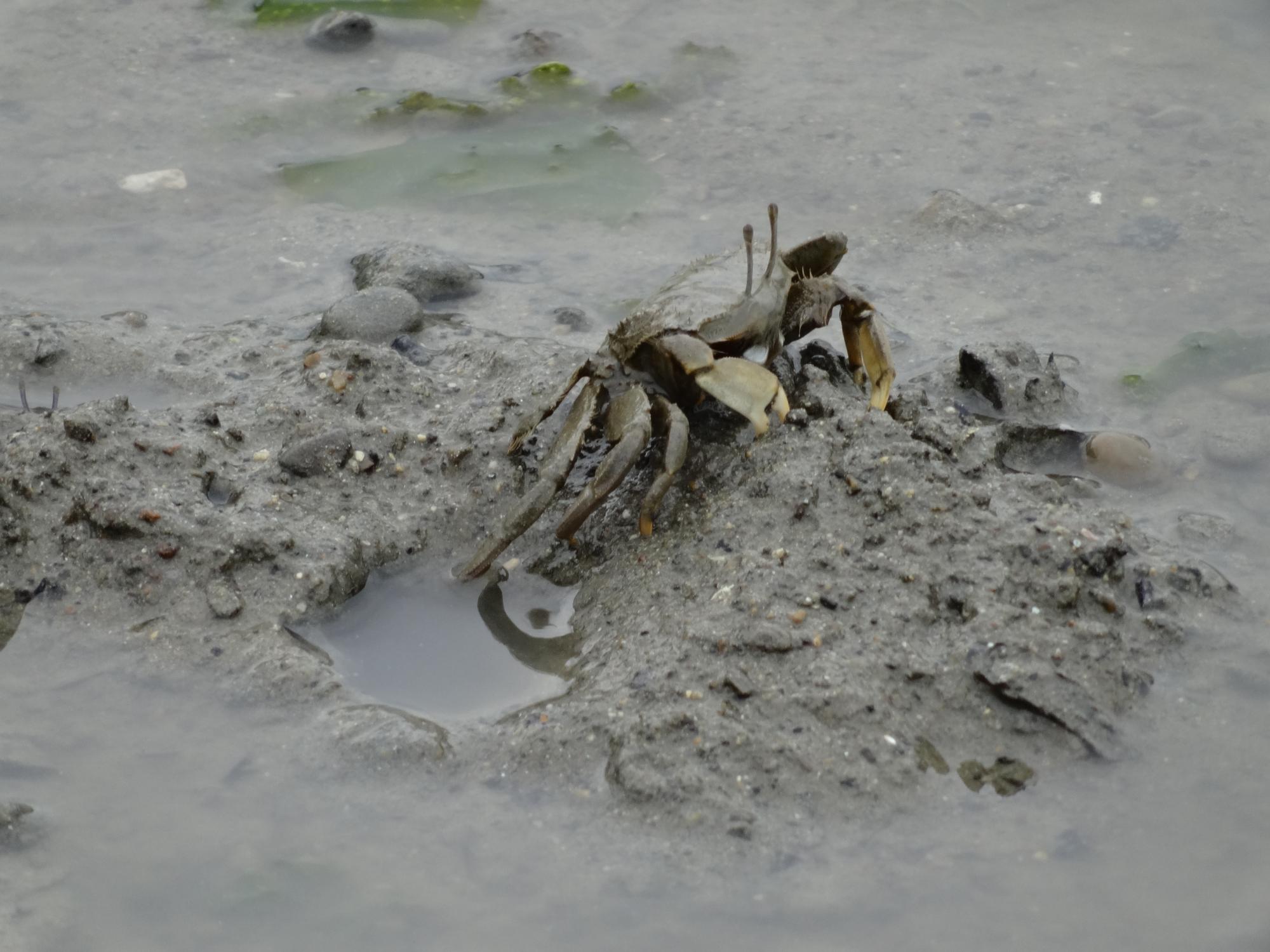 大阪府泉南市と阪南市の境を流れる男里川の河口に小さな自然の干潟が残っています。6月頃まではいろんなシギ類のトリさんたちがいたようですが、シギさんたちが去って、カニさんたちが大繁殖していると聞いて行ってみました。