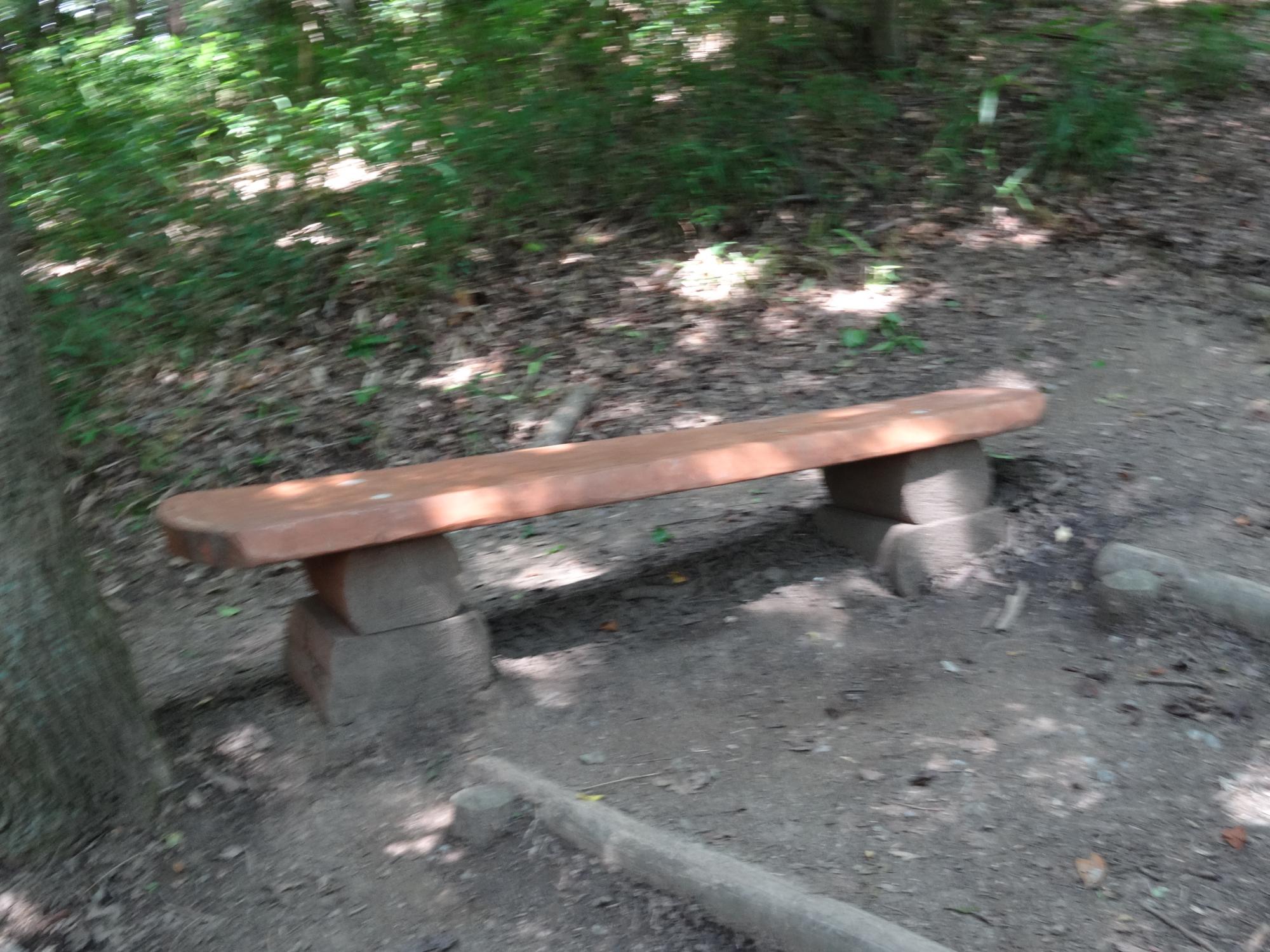 「胸突き八丁!!、休んでよ」という看板と木のベンチがとても嬉しい。