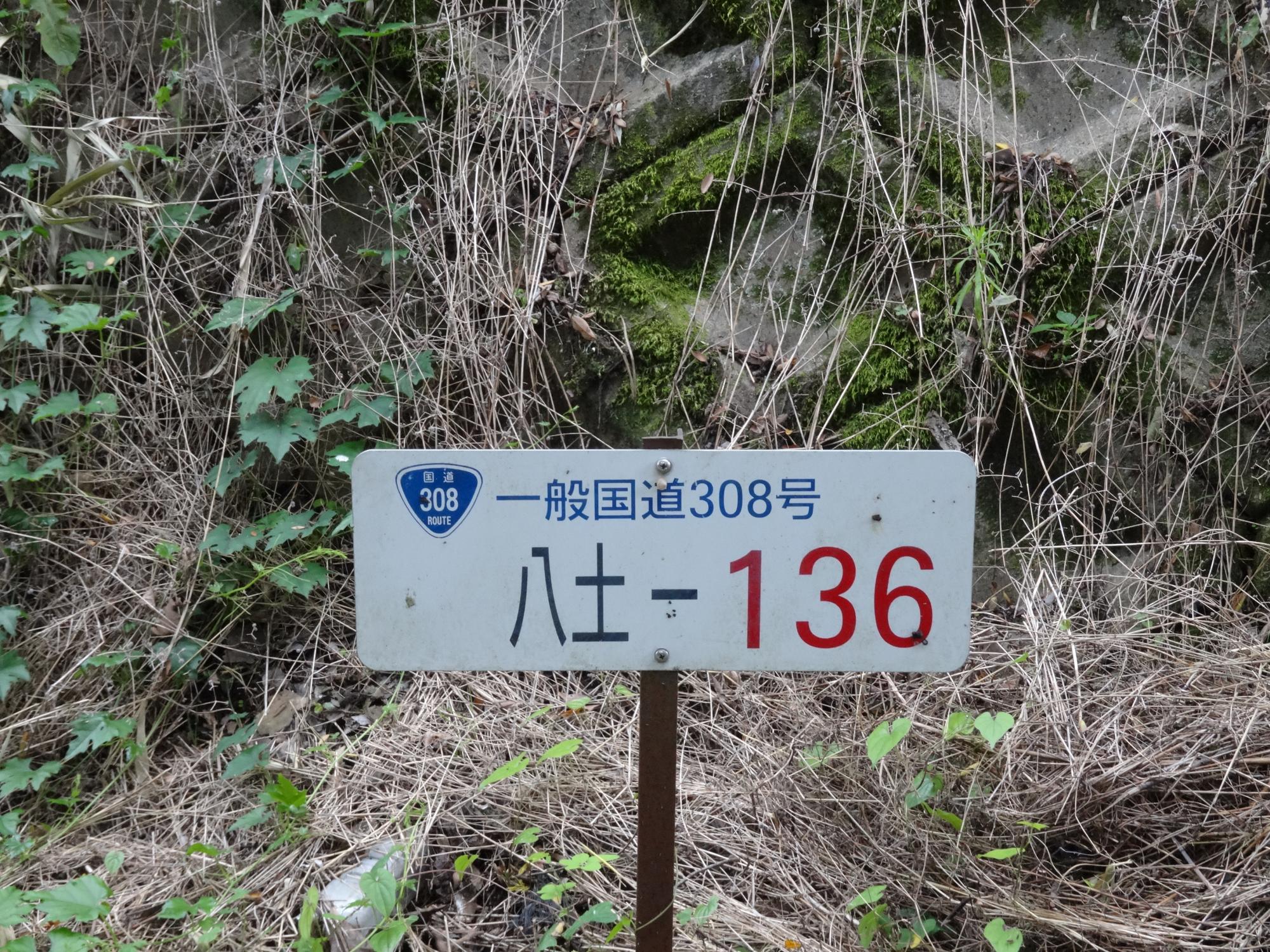 15分ほど下ると広い道にでました。なんとこれ国道です。「八土」は八尾土木事務所の略のようです。
