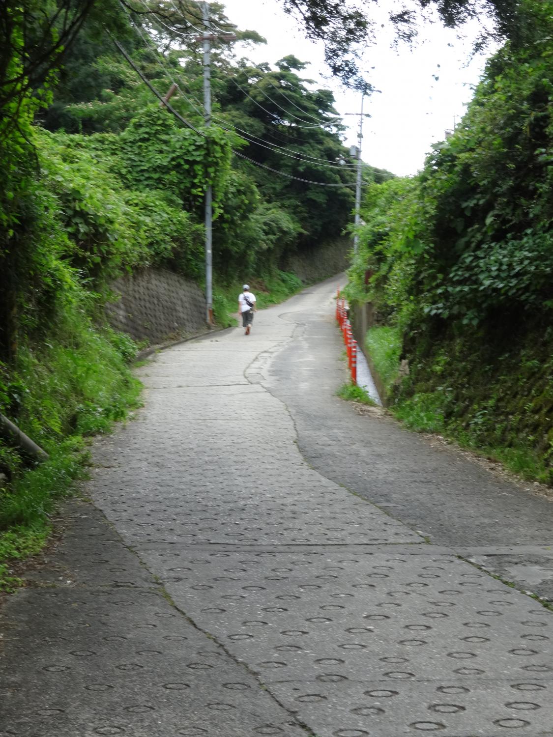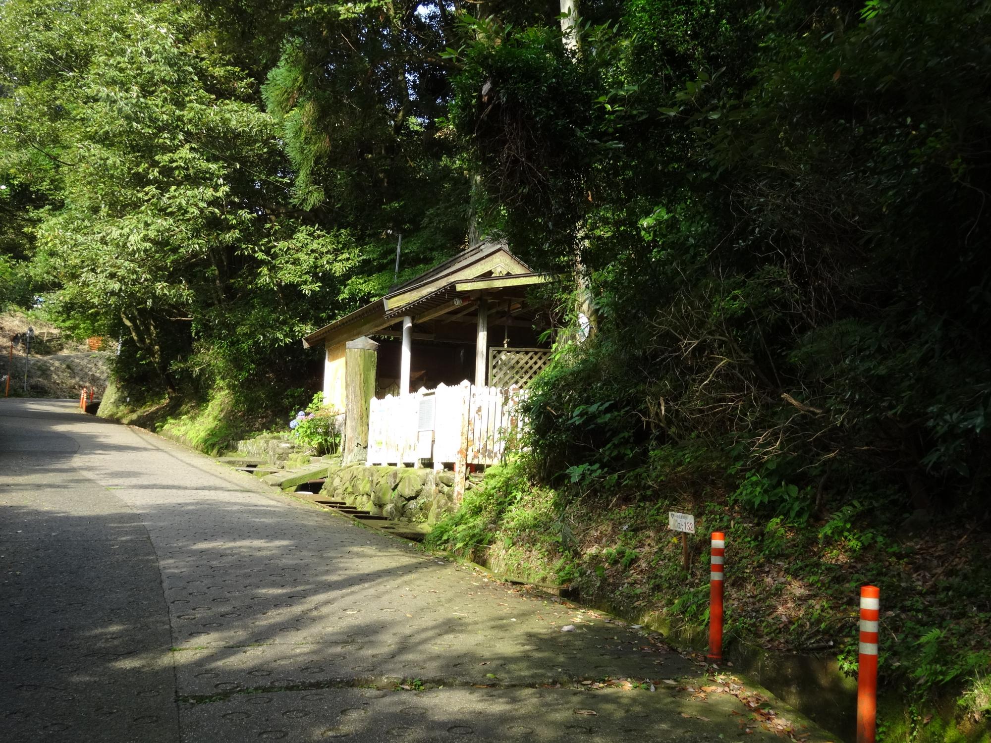 かなり急な下り坂を行きます。さっき通った弘法の水、残念ながら飲むには不適のようです。
