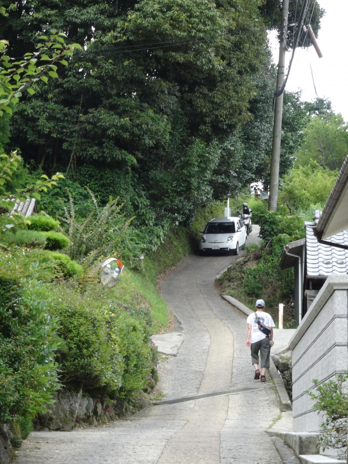 国道308号、平均斜度20%、最大斜度38%で、クルマの通れる道としては日本一の急勾配だそうです。