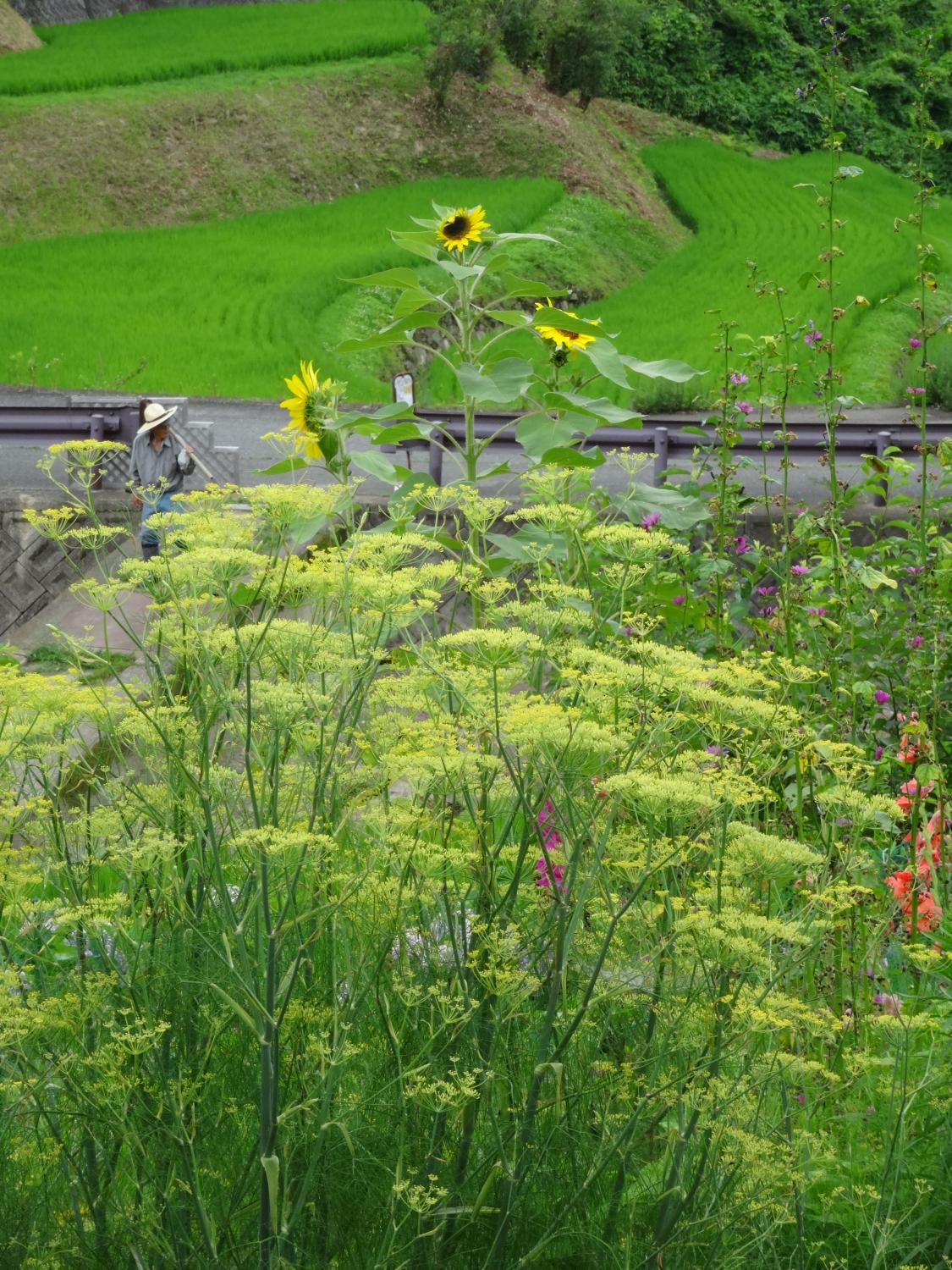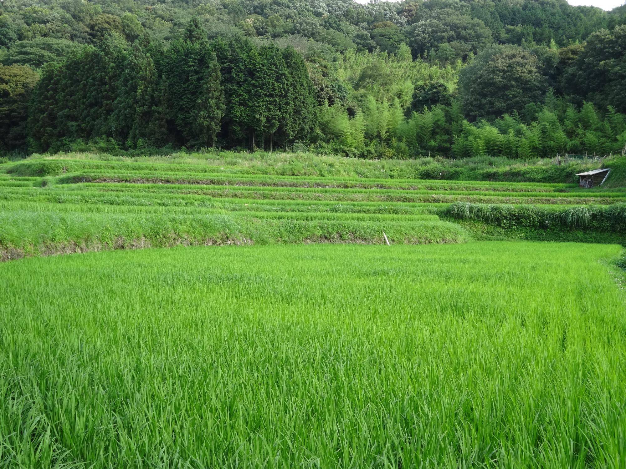 しばらく歩くと急に視界が広がり、何と山の上に棚田が広がっていてビックリ!
