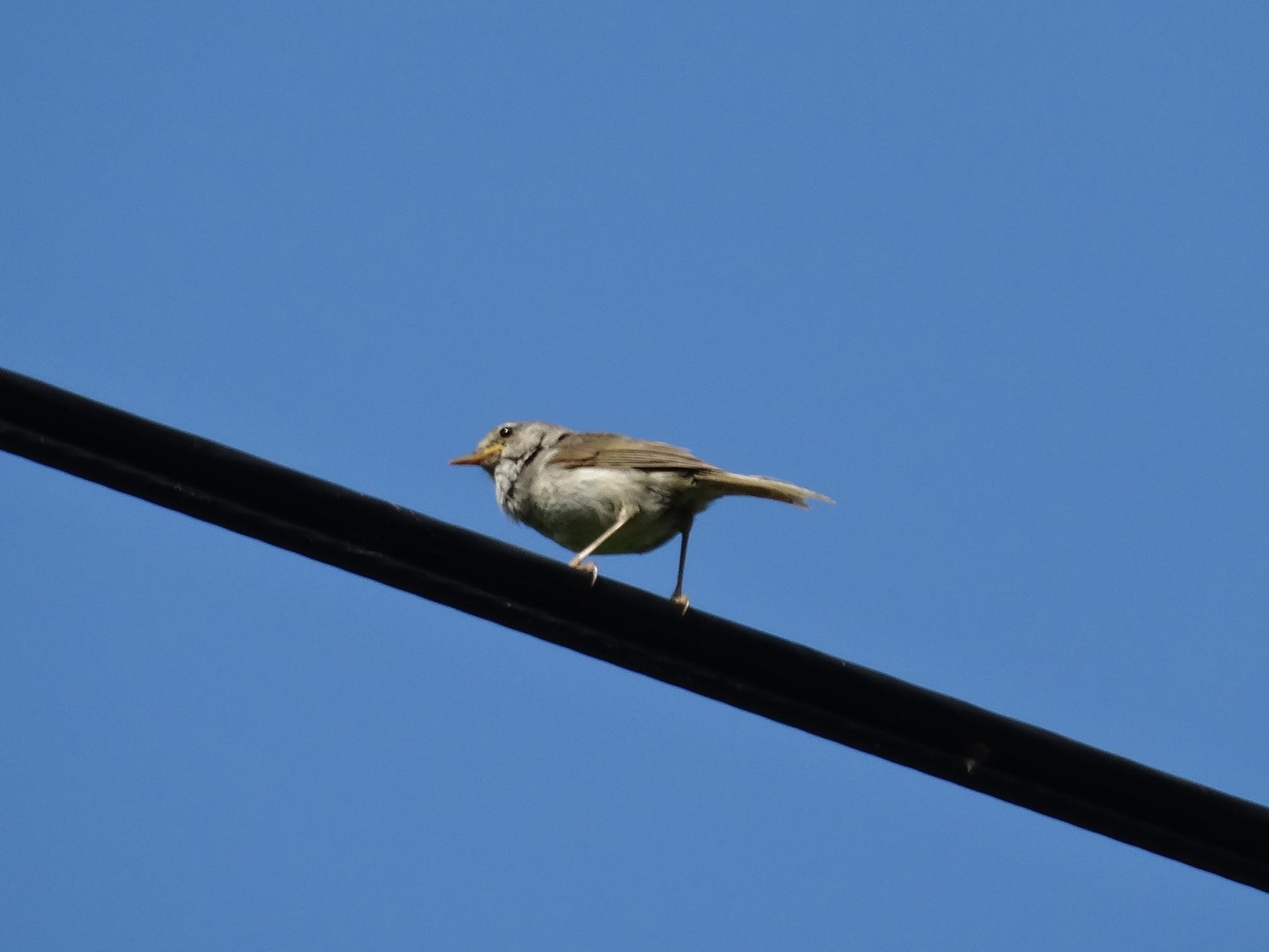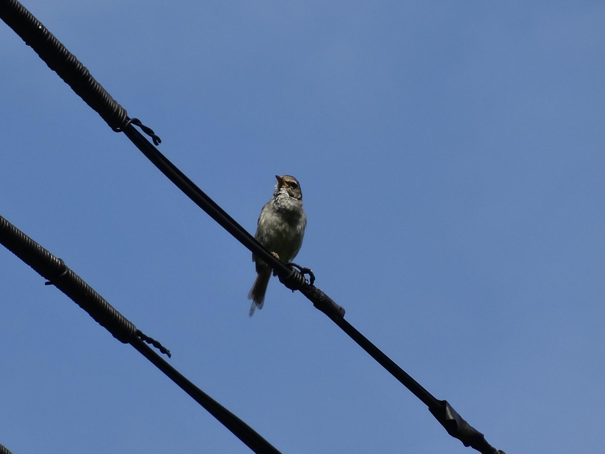 電線でウグイスが鳴いていました。ウグイスはとても警戒心が強い鳥で、こんなことは滅多にないです。つーか、しょっちゅう声を聞いていても、ウグイスの写真を撮れたのは初めてです。