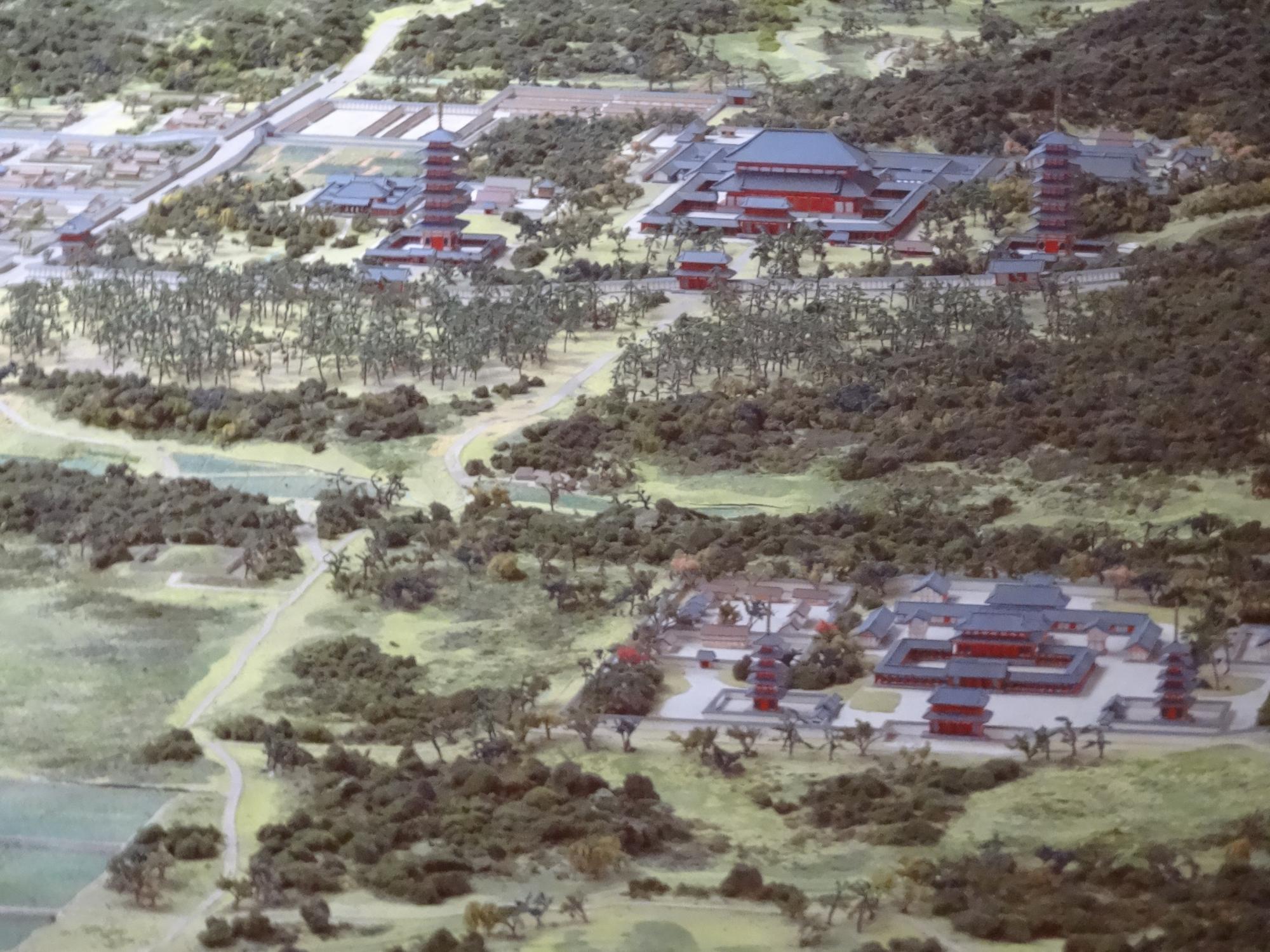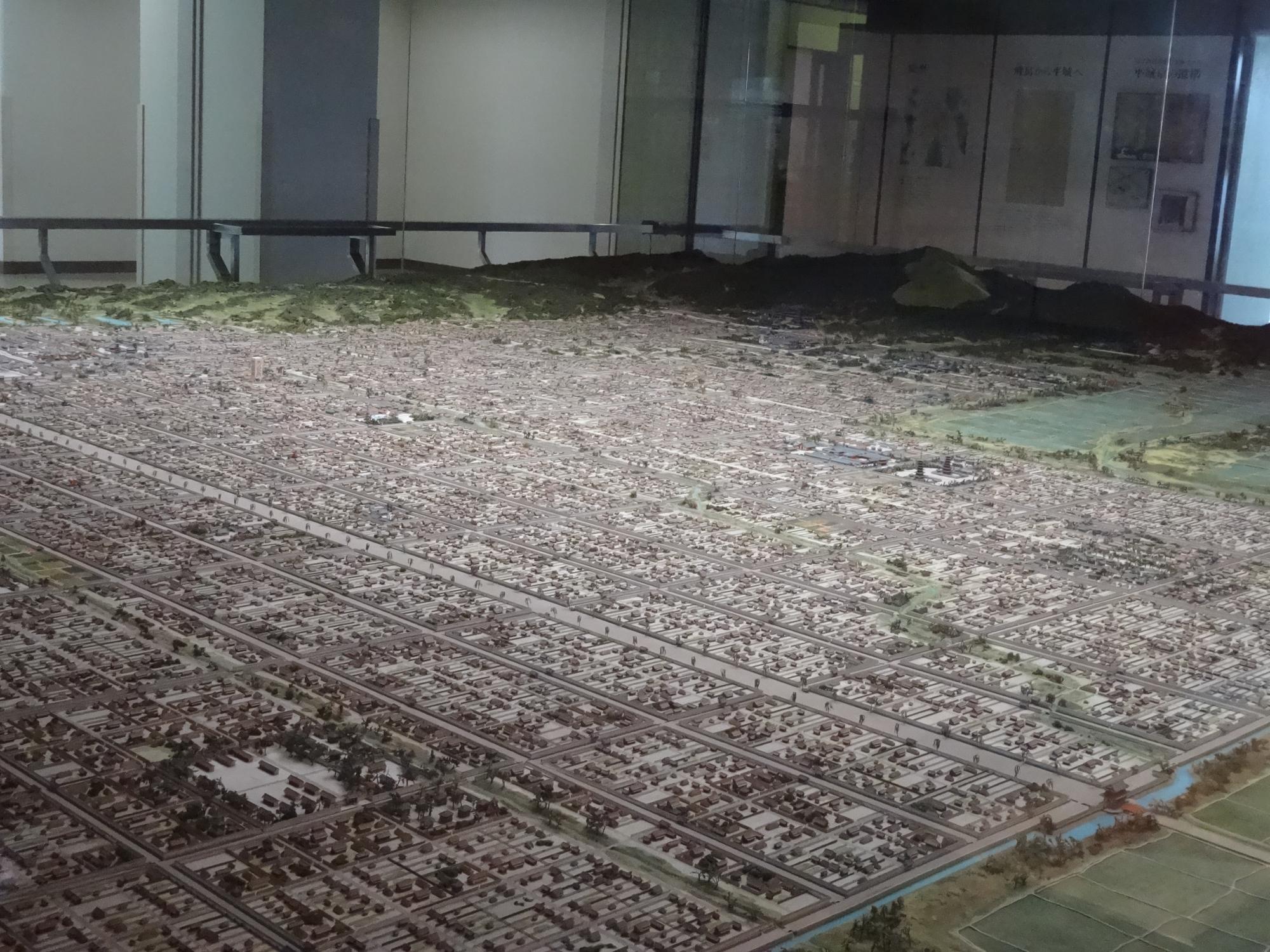 奈良市役所の平城京巨大ジオラマ、1300年前、奈良が世界有数の大都会だったことは伝わってきます。
