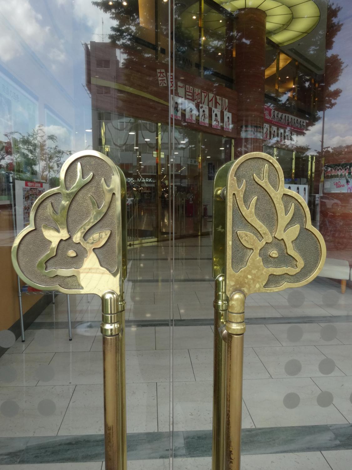 ドアの取っ手は金メッキの鹿のデザインですが、奈良公園の鹿というより、クリスマスのトナカイに見えます。