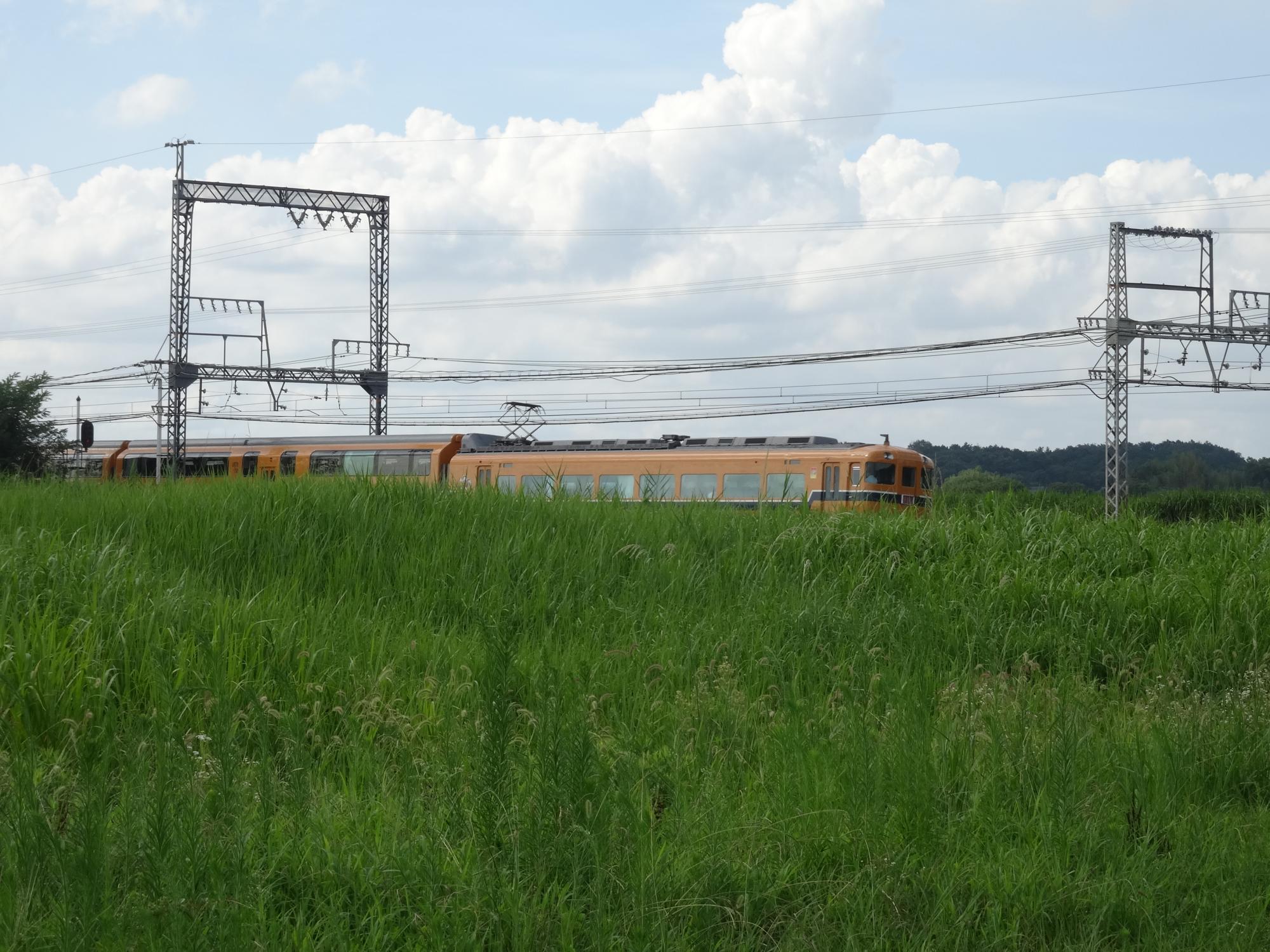 この辺り、若草山を背景に近鉄電車が撮れます。ちょうど奈良線100周年ヒストリートレインがやってきました。