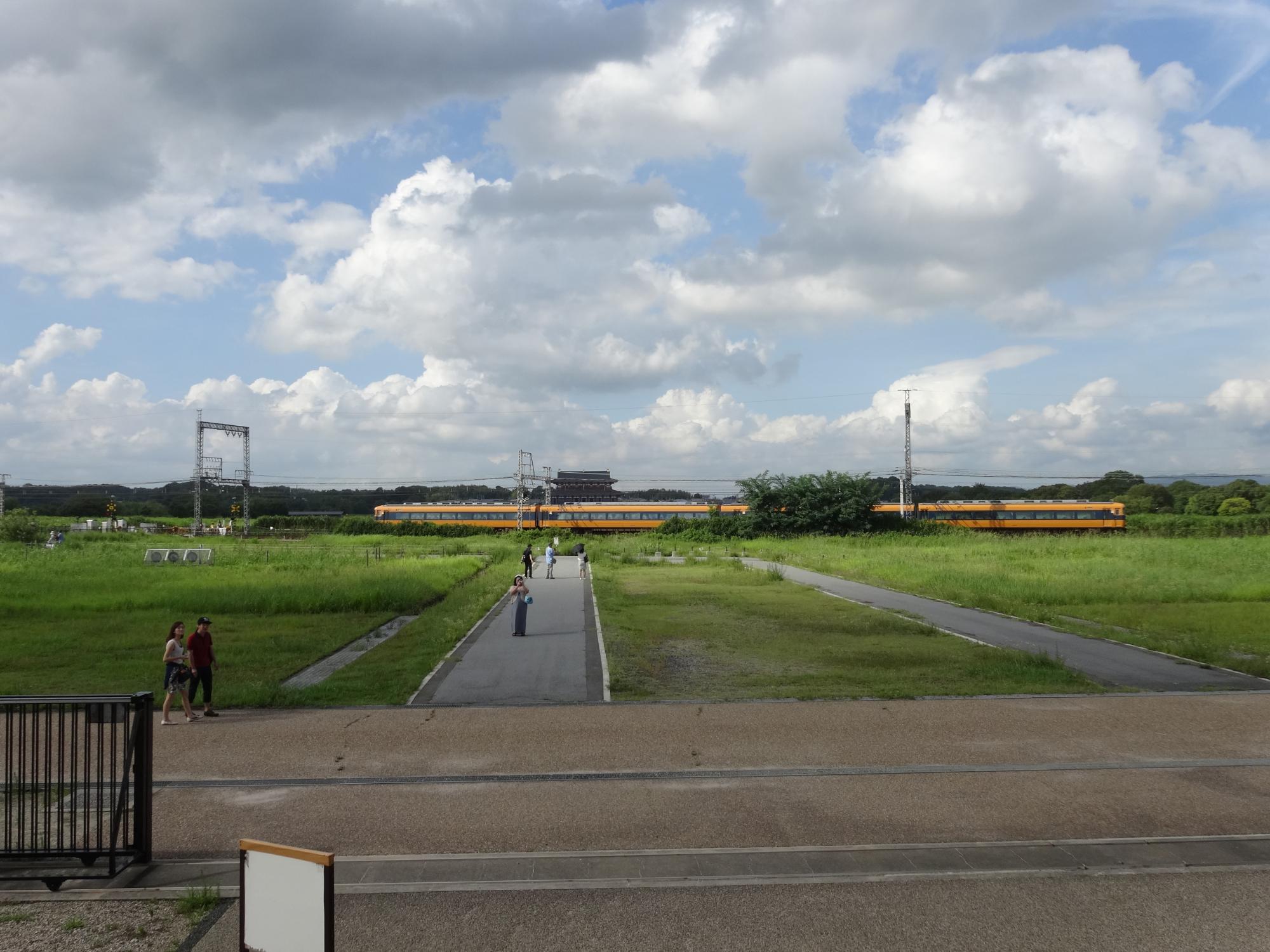 踏切を渡ったあたりから大極殿と朱雀門です。とにかく広い。
