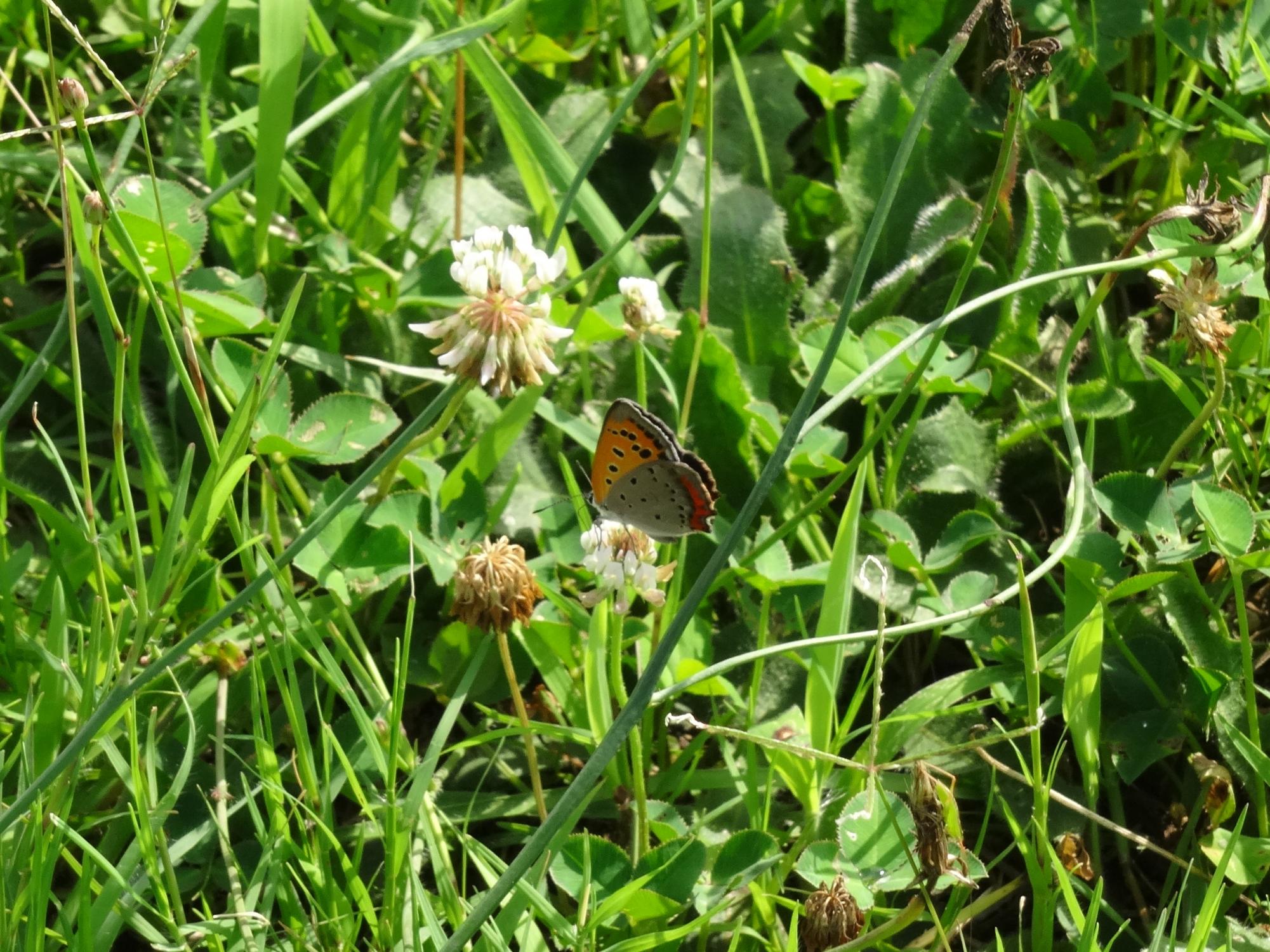 ベニシジミとムギワラトンボ(シオカラトンボ♀)、ムギワラトンボとはうまく名づけたとナットクできる1枚です。