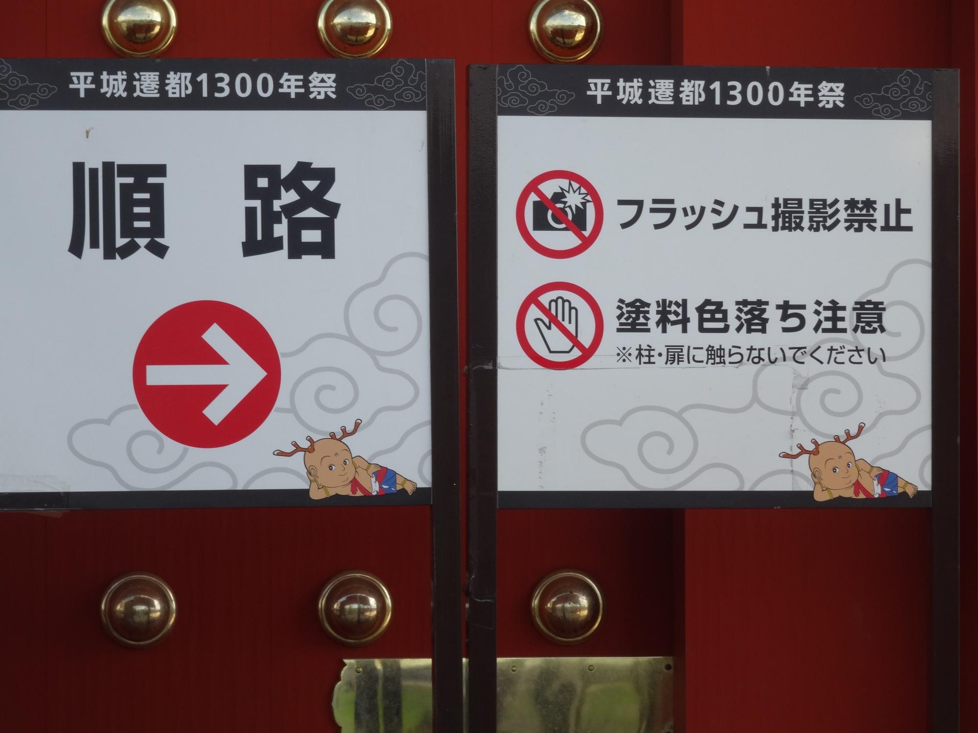 朱雀門辺りでの撮影です。大極殿の塀の門が駅の改札口みたいに見えます。